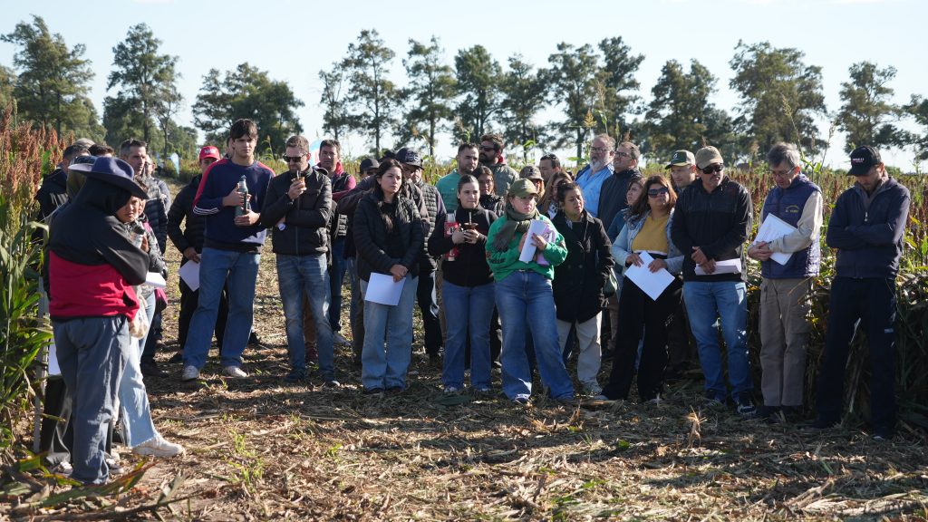 Durante la recorrida a campo, se observaron ensayos de híbridos graníferos, doble propósito y sileros. Las empresas participantes presentaron sus materiales y compartieron información clave sobre el comportamiento productivo de cada híbrido. Además, técnicos del INTA y especialistas invitados abordaron aspectos vinculados a la sanidad del cultivo, como el manejo del pulgón amarillo y el gusano cogollero, dos plagas de gran impacto en la zona.