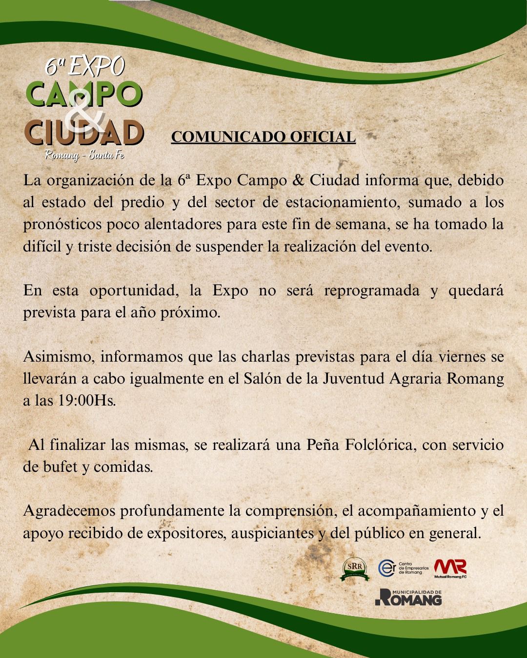 La 6° Expo Campo y Ciudad fue suspendida y no será reprogramada