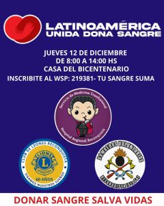 “Tu sangre suma”: este jueves se realizará en Reconquista la 4ª Jornada Latinoamericana de Donación de Sangre 11 diciembre, 2024