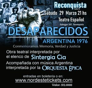 La obra teatral “Desaparecidos Argentina 1976” llega a Reconquista para conmemorar la Memoria, Verdad y Justicia 27 marzo, 2025