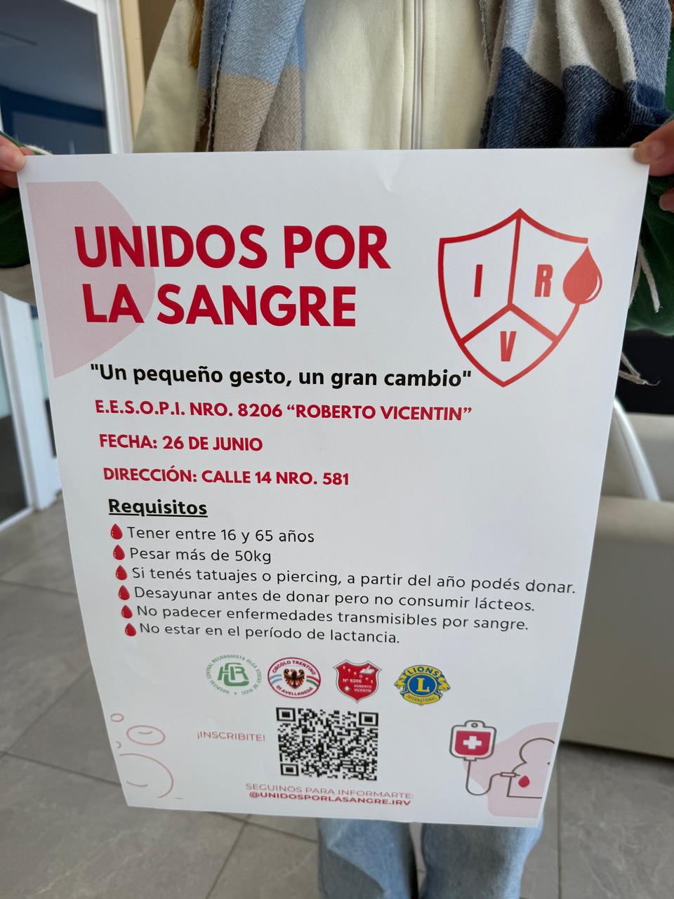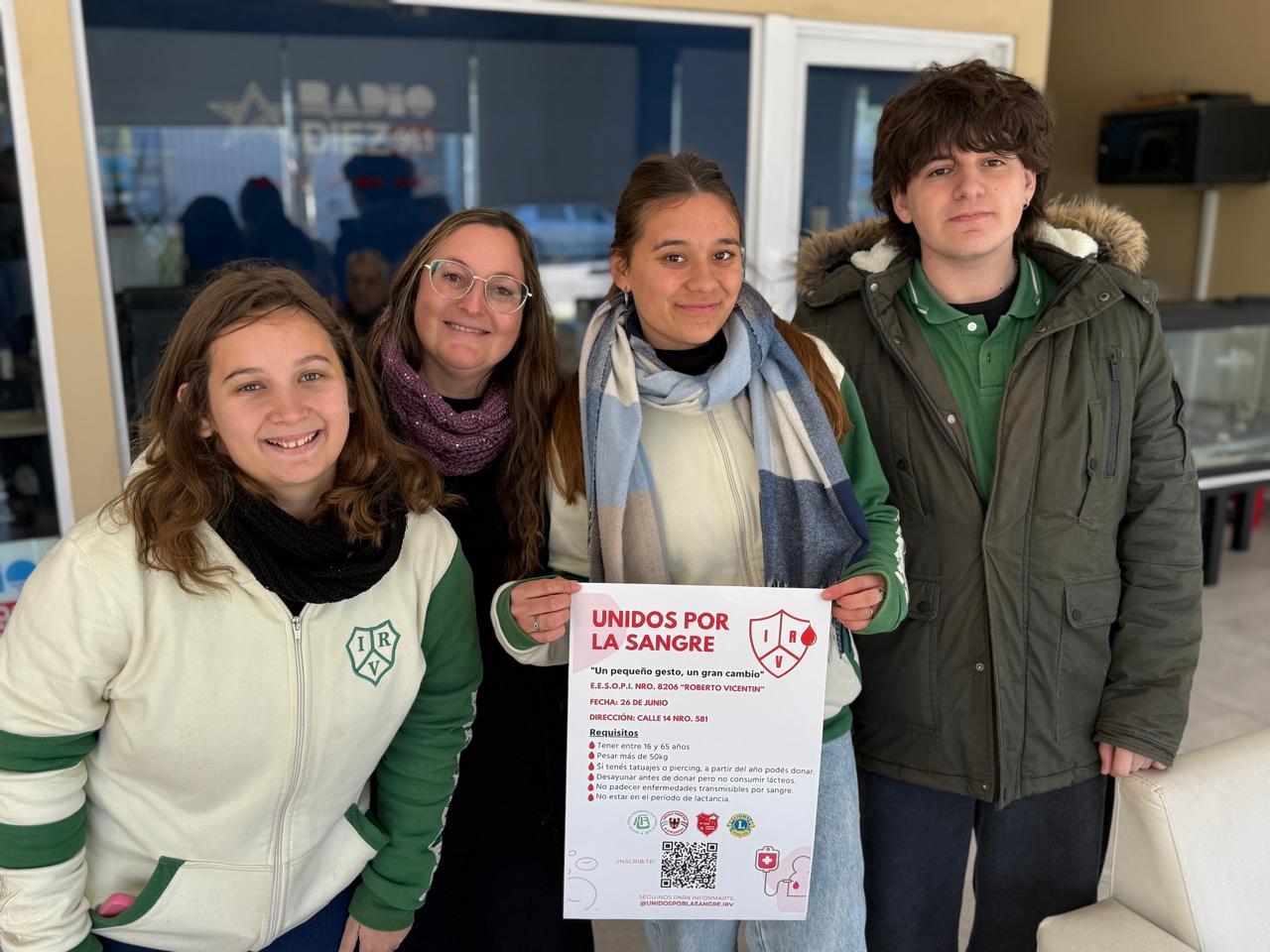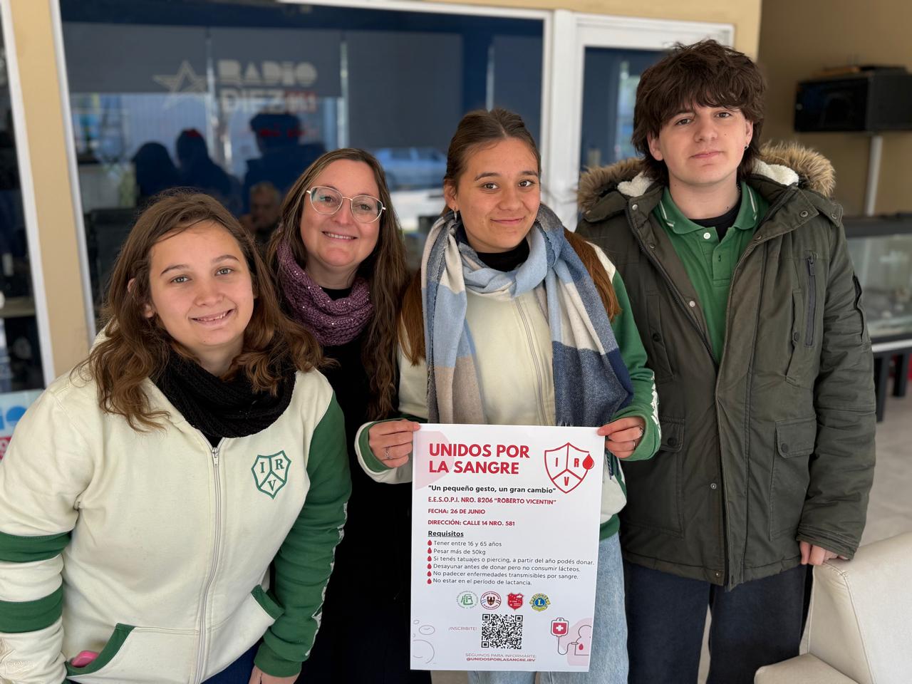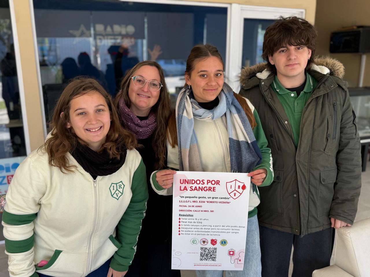 “Estamos trabajando integradamente, cada uno desde su espacio y los chicos son los que habilitan toda la parte constructiva de invitación, comunicación, armando la logística de la campaña“, remarcó, A su turno Sofia Nardelli dijo que la idea es incentivar a los jóvenes a que participen de la campaña, “buscamos incentivar a los jóvenes para que puedan donar sangre de forma voluntaria y no que lo hagan en casos de emergencia“, formuló. Valentina Agustiní contó que se pueden sumar todos aquellas personas de 16 a 65 años que pesen más de 50 kilos, “tener una vida buena y buena salud y se pueden escribir por a través de nuestra de nuestro Instagram Unidos por la sangre IRV ahí van a encontrar un QR se pueden inscribir por ahí o si no pueden ir a nuestra escuela que nosotros los vamos a inscribir“, invitó.