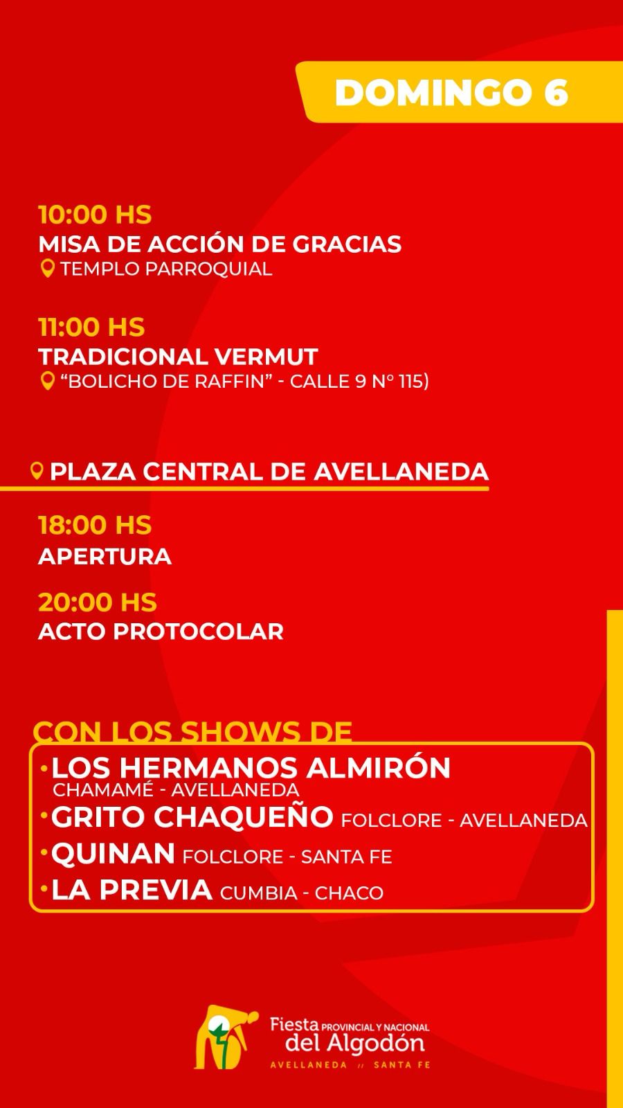 La Municipalidad de Avellaneda estableció el cronograma de actividades de cara a lo que será la 56ª Fiesta Provincial y 39ª Nacional del Algodón, la cual se desarrollará este fin de semana.