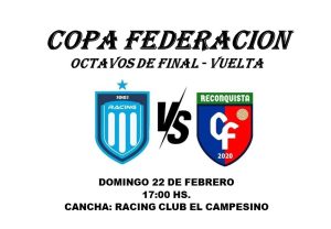 Reconquista CF venció 3 a 1 a Racing El Campesino, accedió a Cuartos de Final de la Copa Federación y clasificó a la Copa Santa Fe 22 febrero, 2026