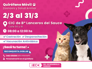 Durante todo marzo el quirófano móvil de mascotas estará en Barrio Lanceros del Sauce 27 febrero, 2026
