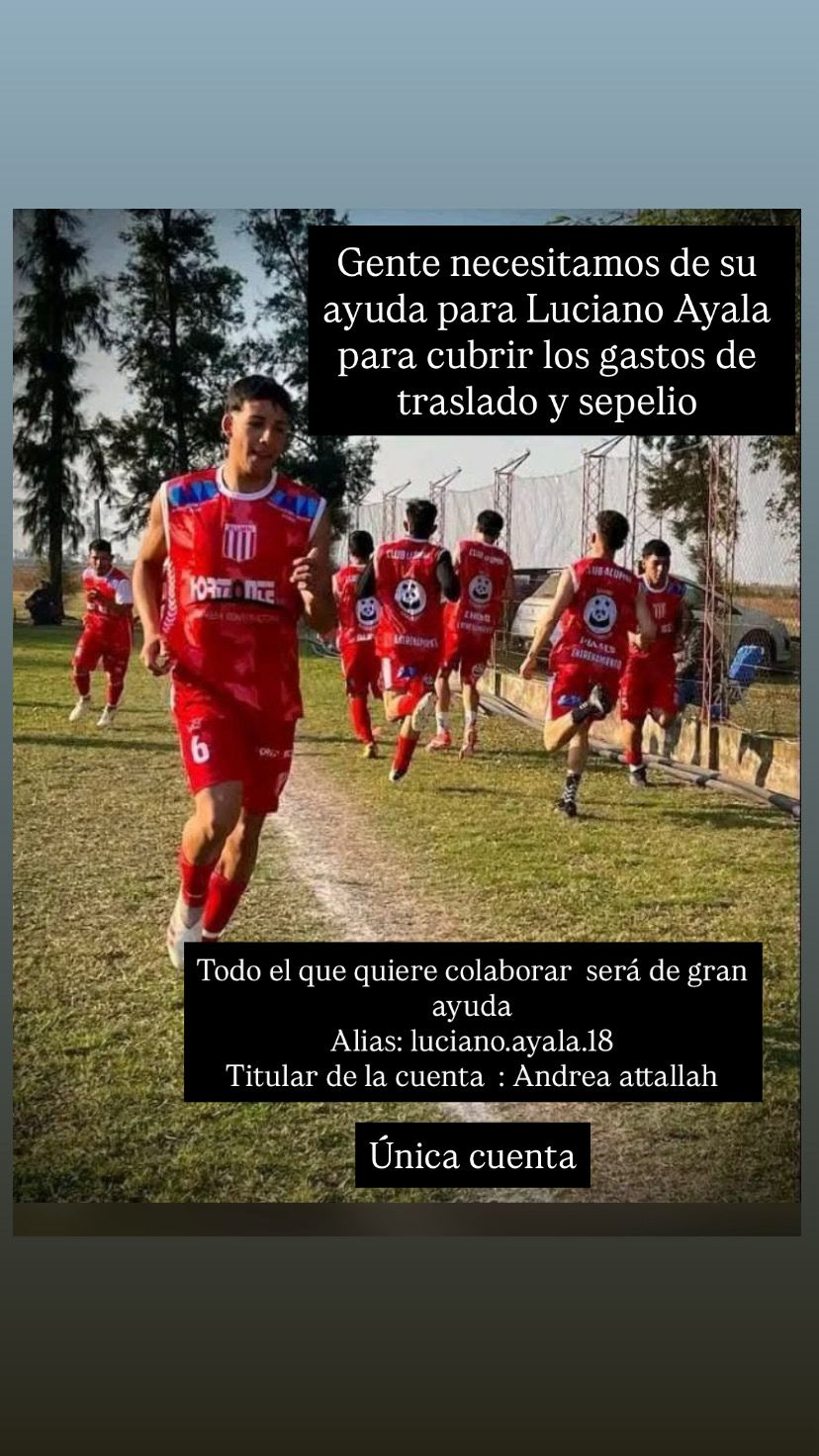 El fútbol de la Liga Reconquistense atraviesa un duro momento por el fallecimiento de Luciano Ayala, jugador del Club Alumni, quien tenía 18 años.