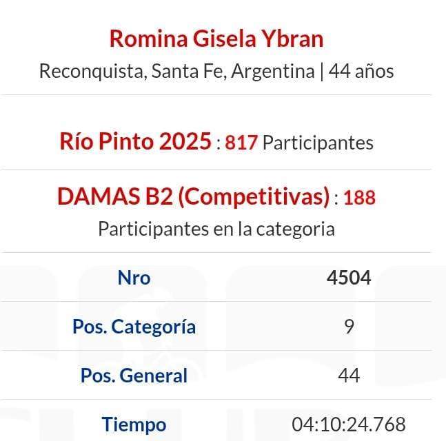 Romina Gisela Ybran fue la destacada, ubicandose 9º en su Categoría y 44º en la General Damas.