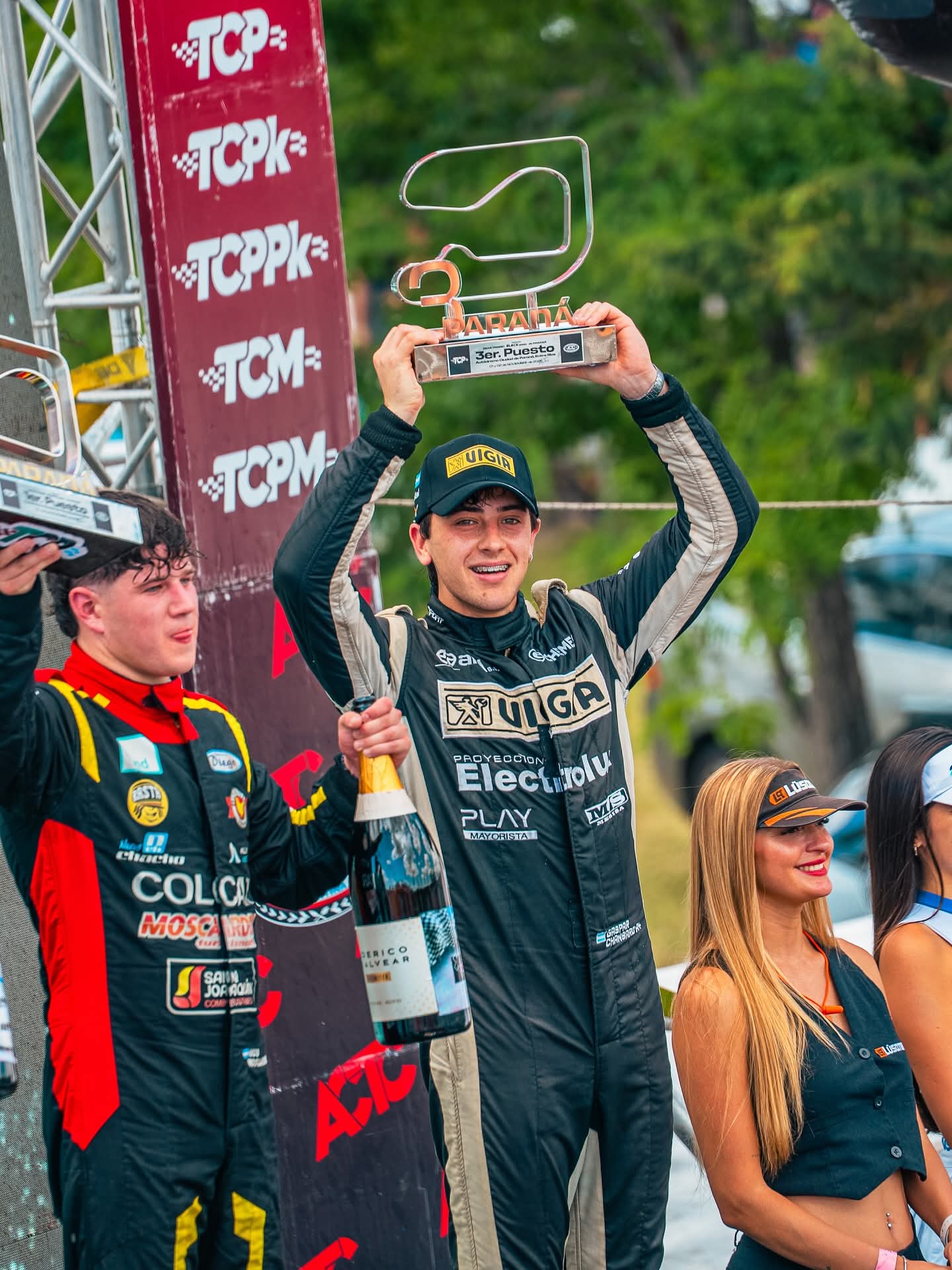 Foto: el piloto reconquistense junto a sus padres Matías y Rosana.