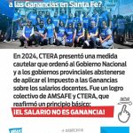 AMSAFE informa que, tras más de un año sin descuentos por Impuesto a las Ganancias gracias a la medida cautelar obtenida por CTERA en 2024 -que ordenaba al Gobierno nacional y a los gobiernos provinciales abstenerse de aplicar este tributo sobre los salarios docentes bajo el principio de que el salario no es ganancia-, la situación ha cambiado de manera regresiva para el sector.