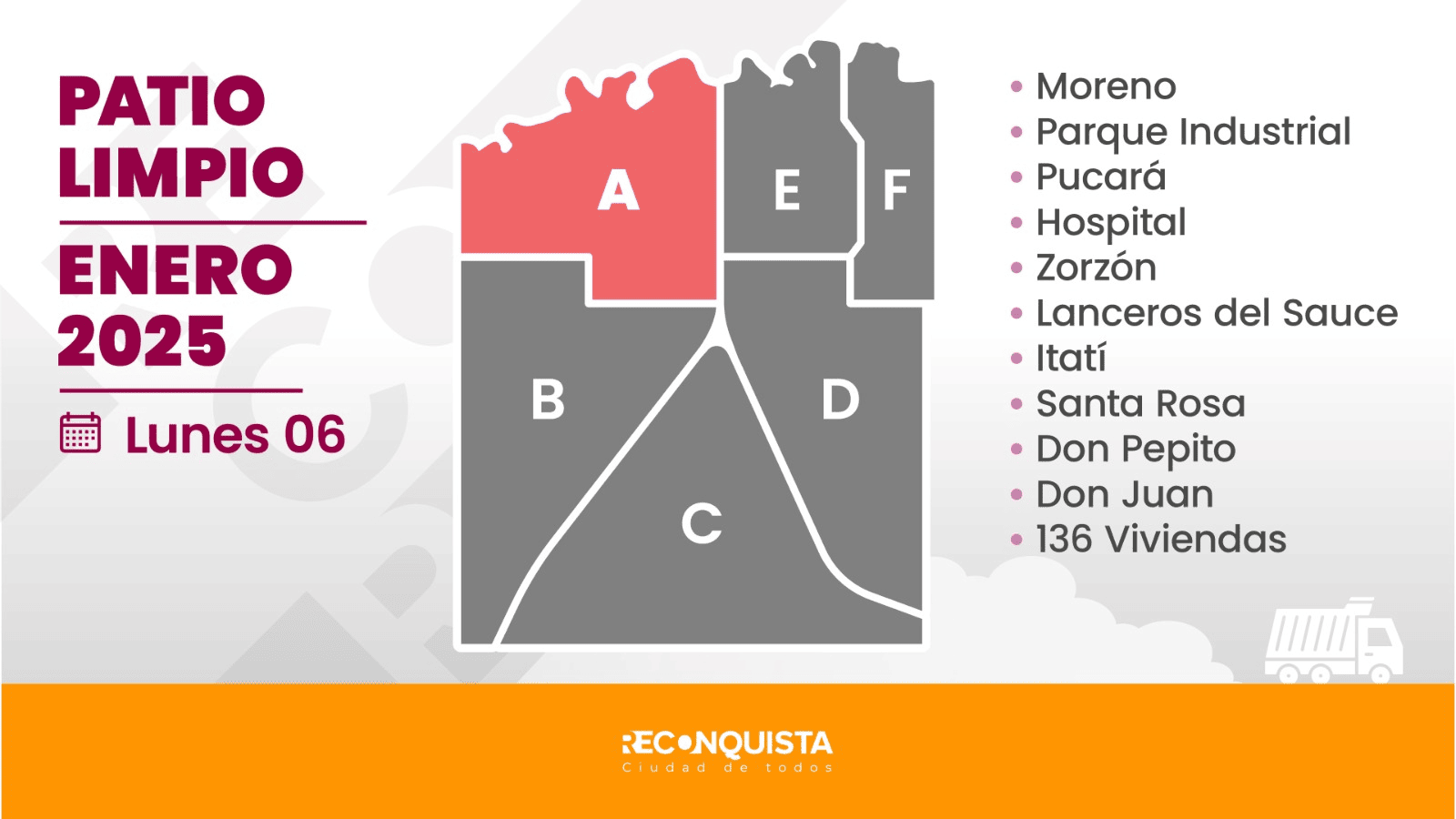 Comienzan las tareas de Patio Limpio en Zona A (barrios del Este y Nordeste de la ciudad). Las palas trabajan en los barrios Itatí, Santa Rosa, Don Pepito y Moreno. También en Zorzón, Distrito IT y parte de barrio San Martín.