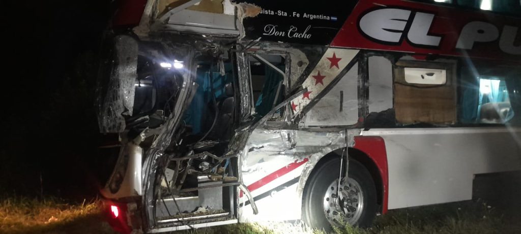 Un grave siniestro vial se registró a las 4:20 de la madrugada de este lunes en el kilómetro 761 de la Ruta Nacional 11, donde colisionaron de frente un colectivo de larga distancia y un camión con acoplado que transportaba soja.