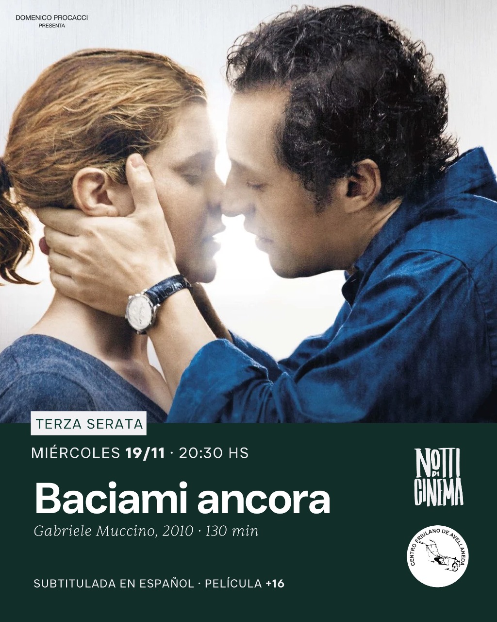 Para este próximo miércoles 19 de noviembre, la propuesta será la película “Baciami Ancora”, un verdadero clásico de la cultura cinematográfica italiana.