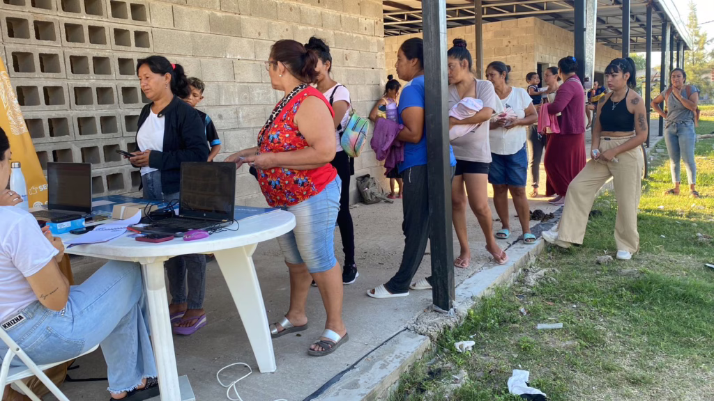 “Es para docentes, alumnos y asistentes escolares de escuelas primarias, secundarias y terciarias. El trámite es personal y pueden hacerlo en la página CLIC AQUÍ , ya sea inscripción o reinscripción. En Loteo Belén estamos ayudando a quienes no pueden acceder o tienen algún tipo de inconveniente, ayer atendimos entre 80 y 100 personas, hoy se superará y mañana seguiremos inscribiendo. Si surge la solicitud, estaremos en otros barrios”.