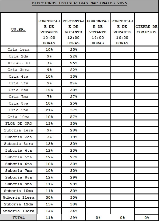 AQUÍ LOS PORCENTAJES DE VOTOS EMITIDOS HASTA EL MEDIODÍA: