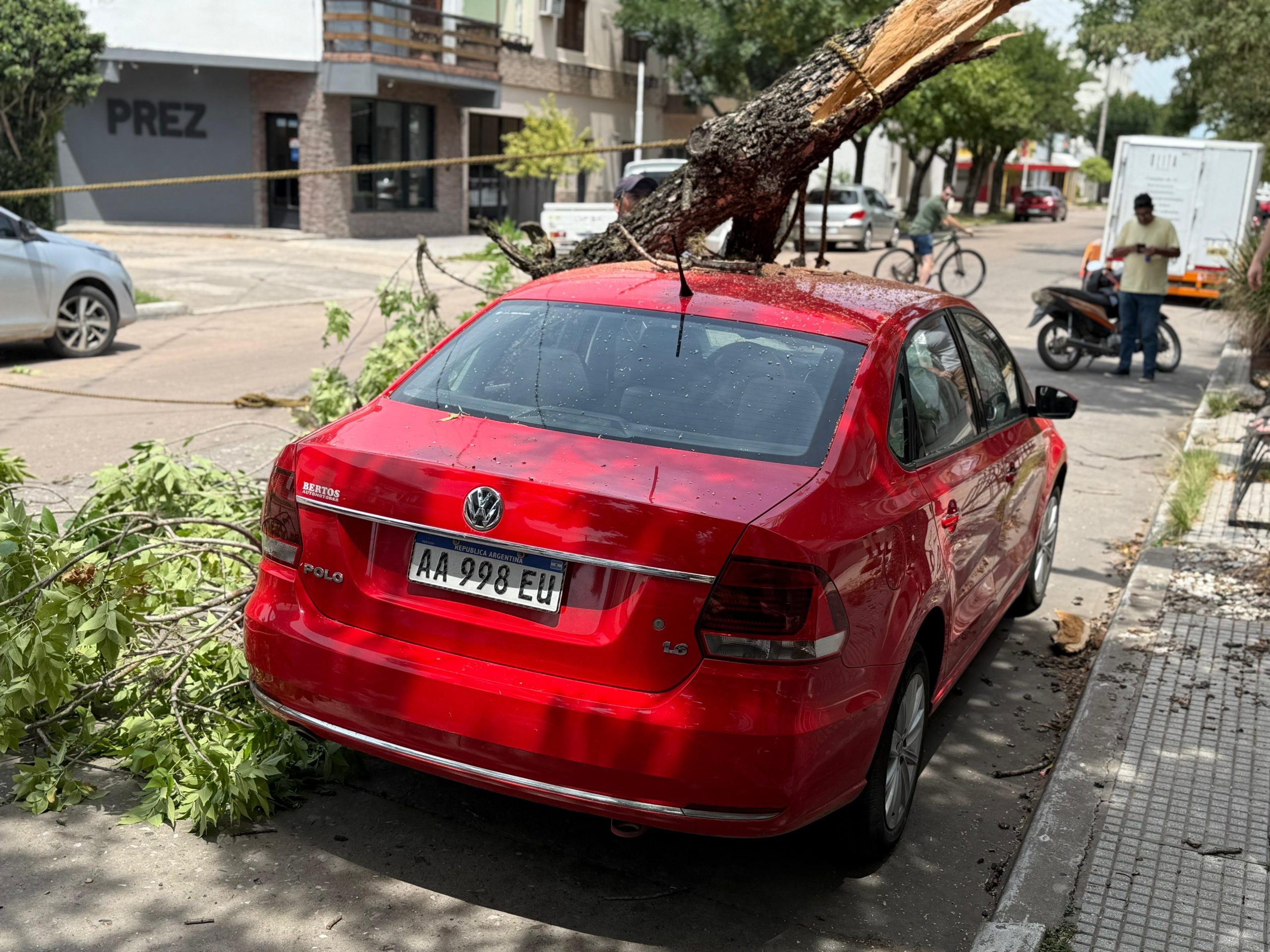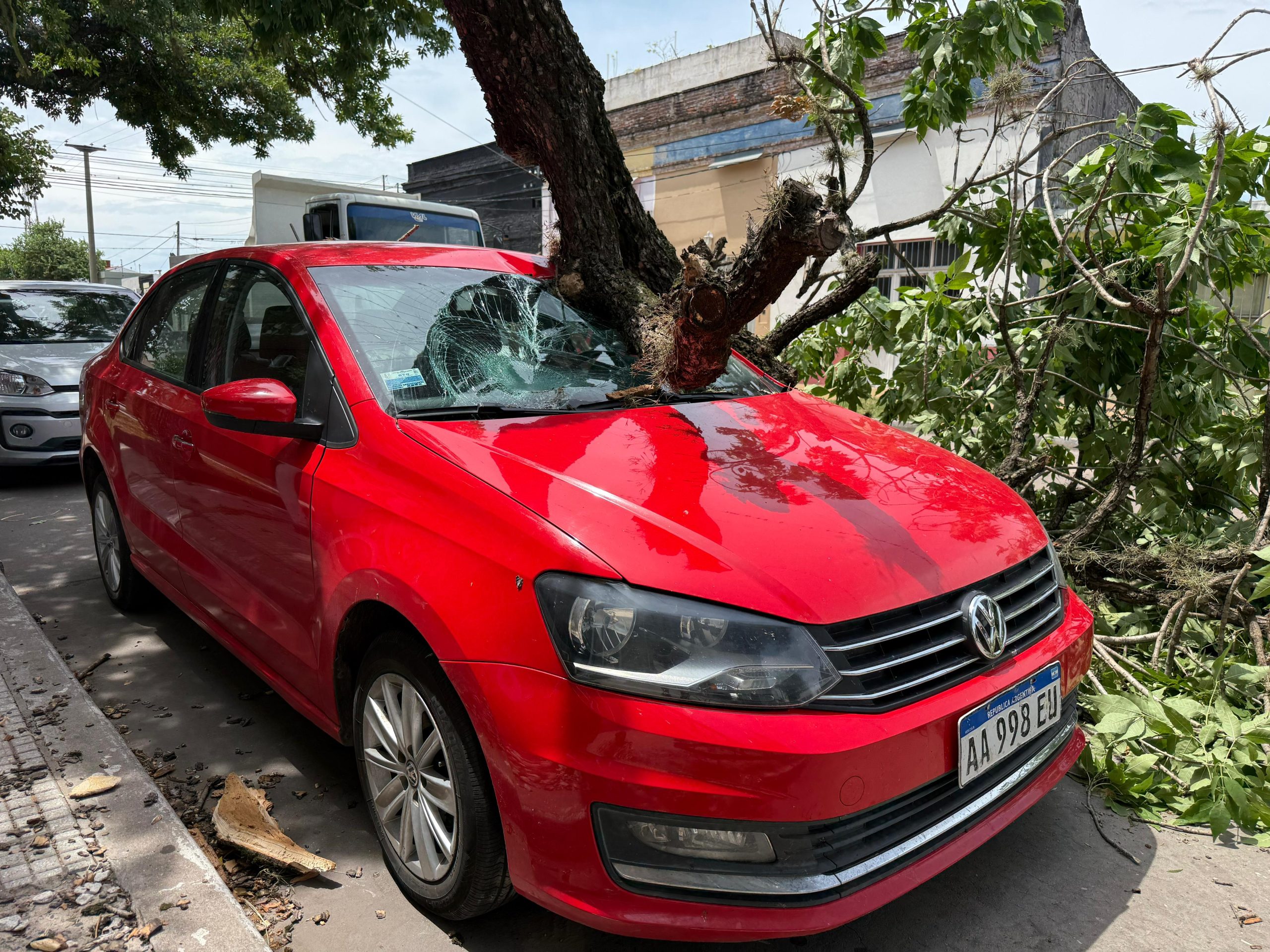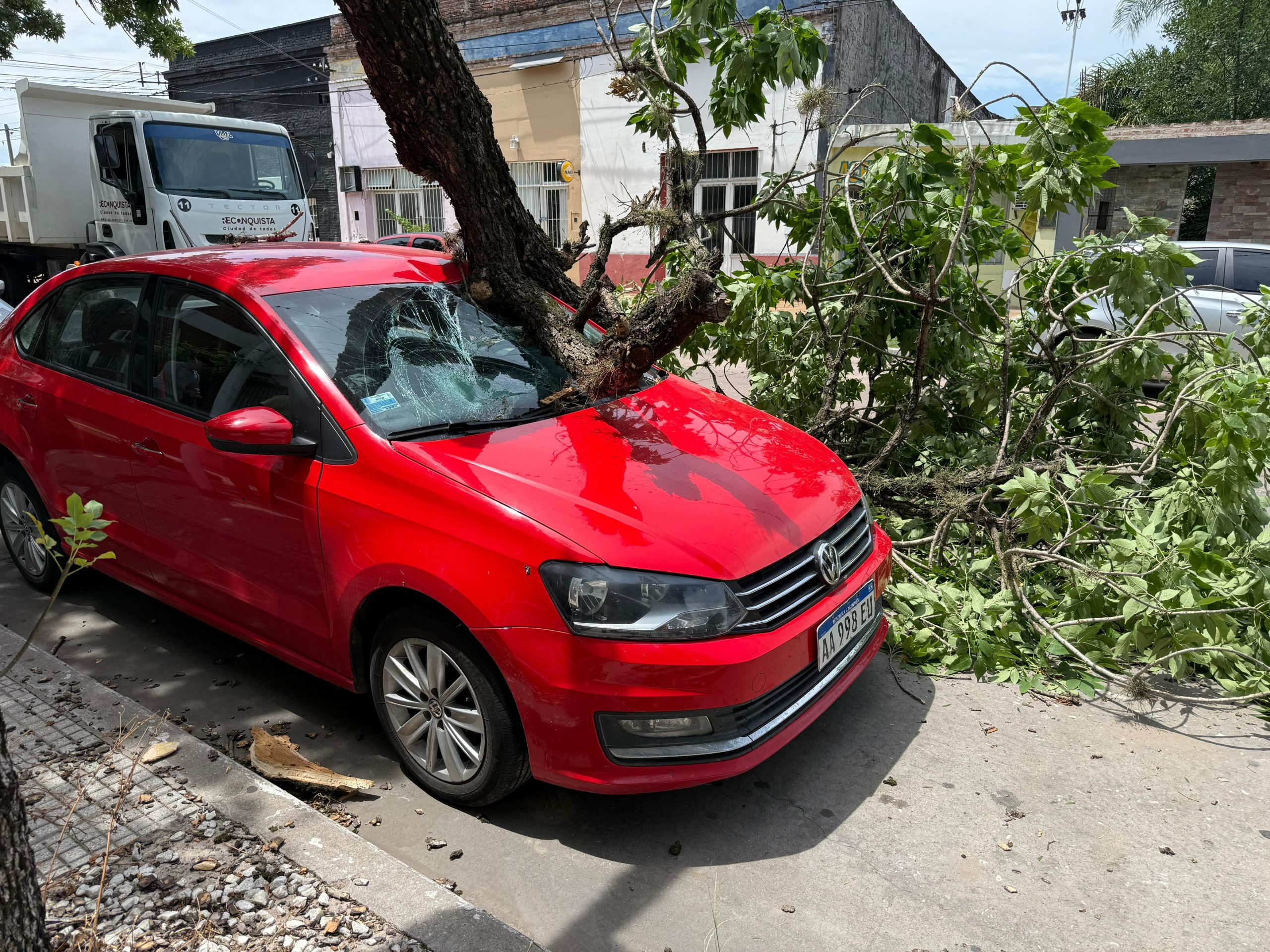 Un hecho inesperado generó preocupación este mediodía en Reconquista, cuando un árbol podrido cayó sobre un automóvil que se encontraba estacionado, provocando serios daños materiales en su Wolkswagen Polo 1.6 rojo. El episodio ocurrió en calle 9 de Julio entre Brown y Newbery, mientras su propietario no se encontraba dentro del vehículo.