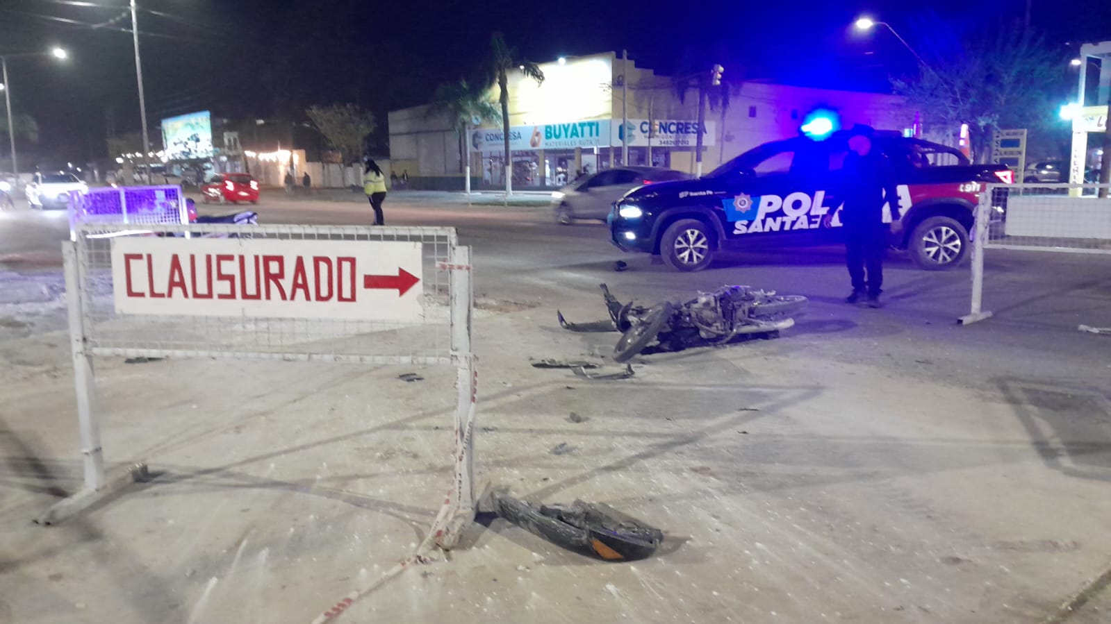 Al llegar, entrevistan a Rodrigo Leme de 35 años y domiciliado en Barrio 374 viviendas, Manzana 12 casa 155 , quién manifestó que no vió el cartel de desvío de Bv. Perón y Calle 44 y terminó colisionandolo con su motocicleta Honda Wave 110 cc color negra, dominio A010ERB.
