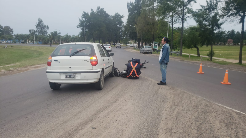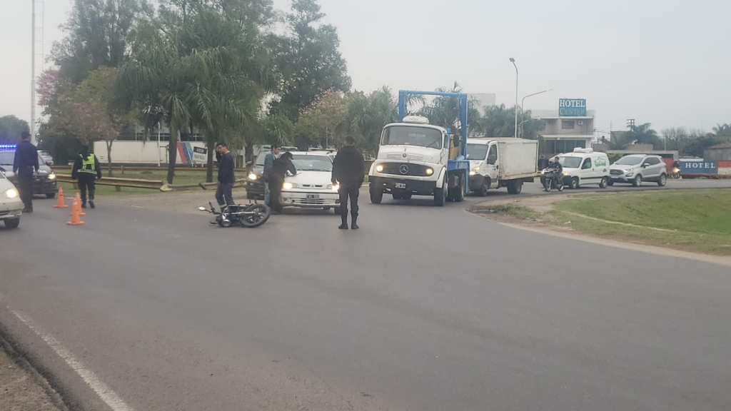 Un accidente de tránsito se registró en la rotonda de acceso sur a Reconquista en la mañana del martes, donde un automóvil Fiat Palio colisionó con una moto Yamaha que circulaba en la misma dirección.