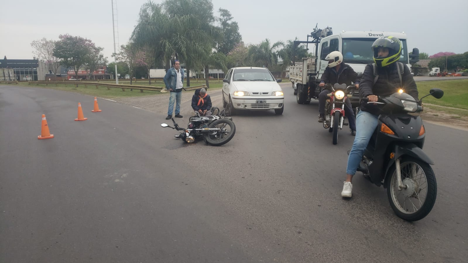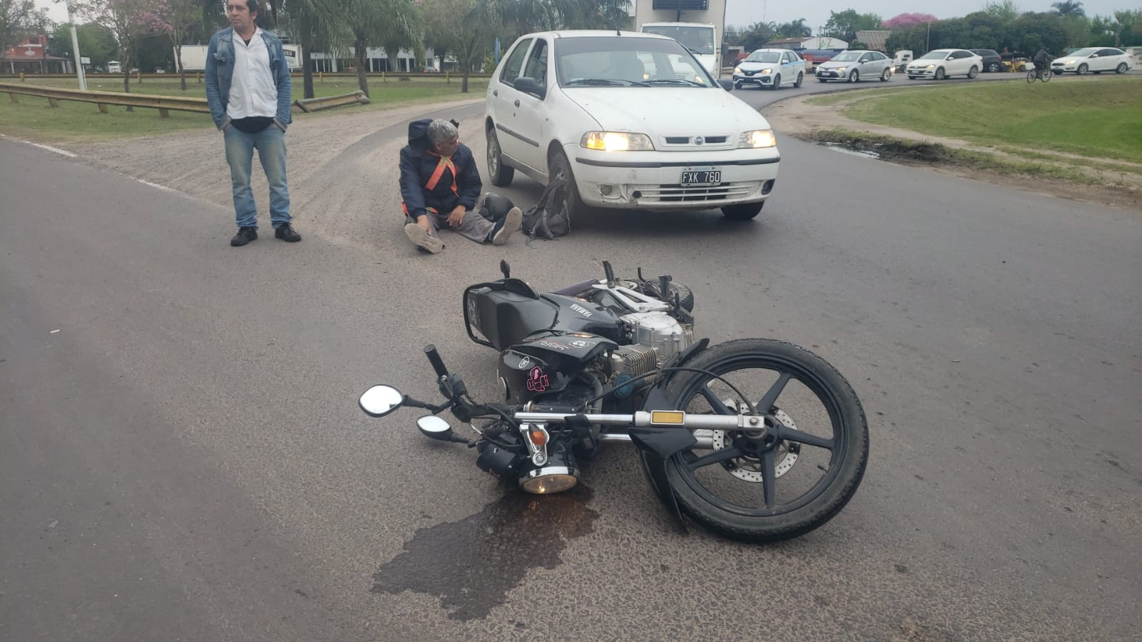 Un accidente de tránsito se registró en la rotonda de acceso sur a Reconquista en la mañana del martes, donde un automóvil Fiat Palio colisionó con una moto Yamaha que circulaba en la misma dirección.