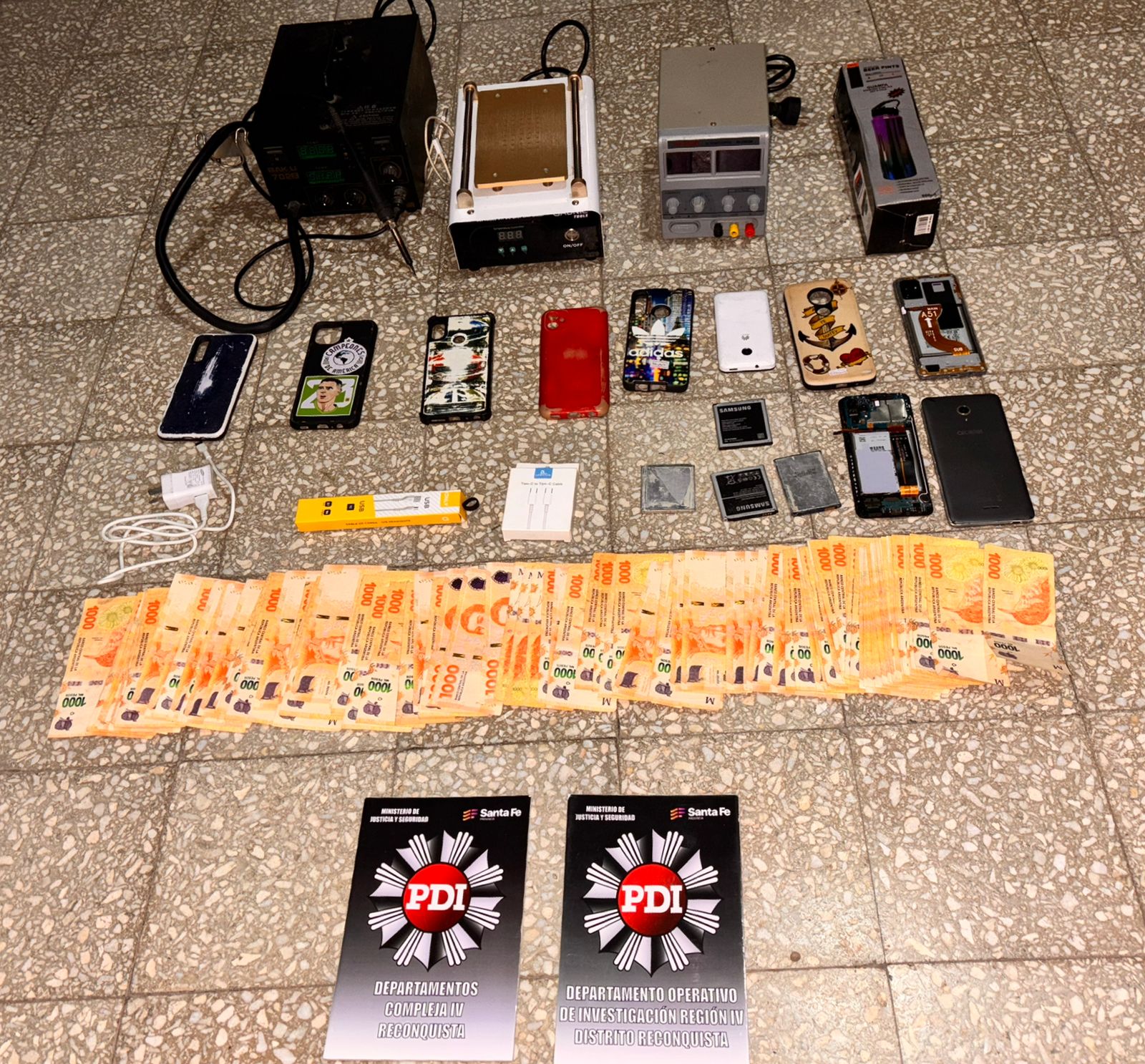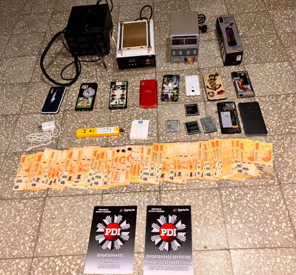 En dichos procedimientos los agentes aprehendieron a los sujetos mencionados y secuestraron 3 teléfonos celulares, 2 baterías, 5 fundas de siliconas de celular, 2 baterías de teléfono, 1 protector de silicona con dos stickers, 2cajas, 1 cargador de celular color blanco de marca Samsung con cable usb, 1 cable, 1 plancha de calor marca Gadnic, 1 fuente de alimentación regulable y 1 estación de soldadora de color negra.