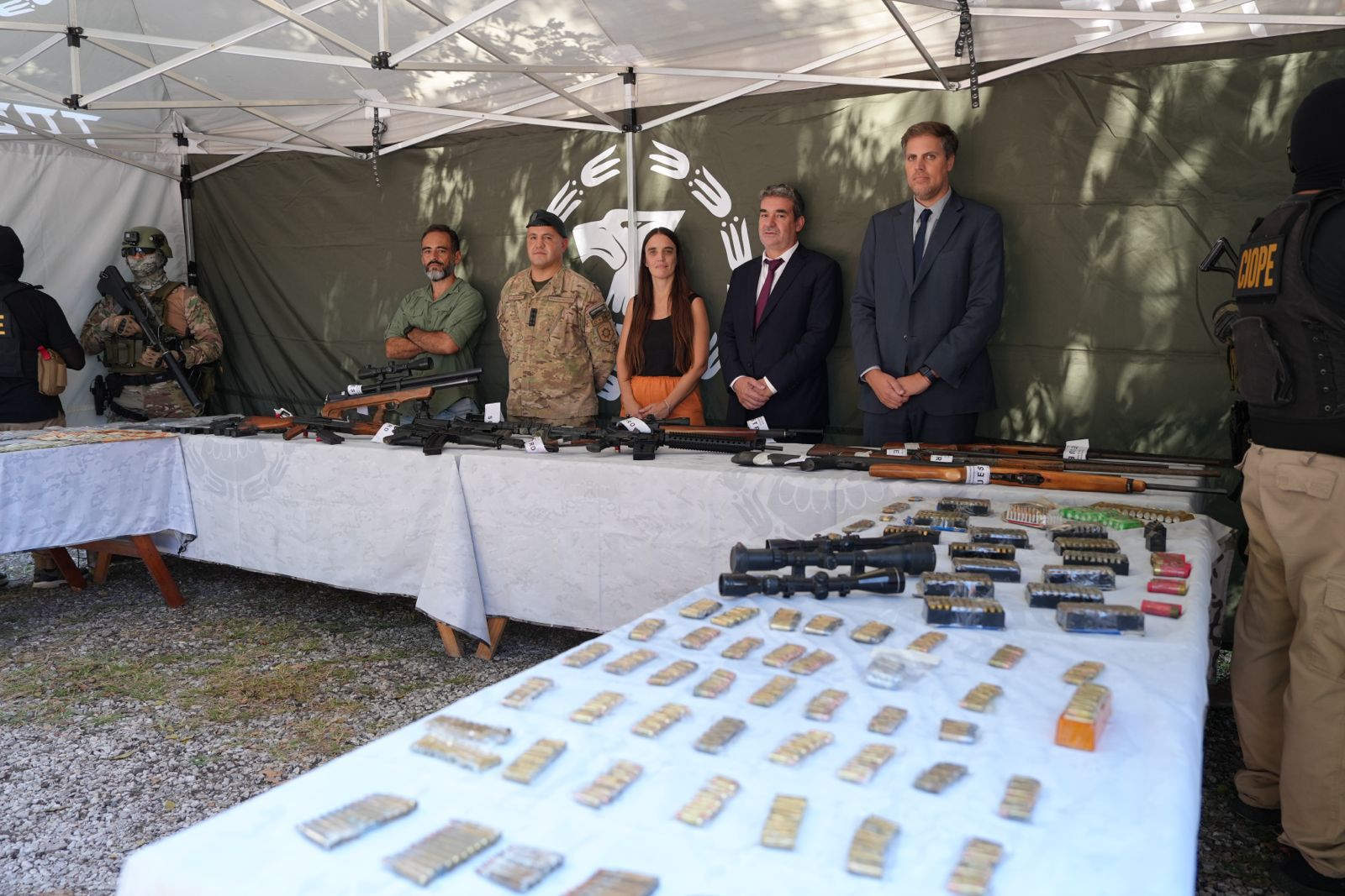 Entre el armamento secuestrado se encontraron pistolas calibre 9 milímetros y calibre .40, además de armas de marcas como Glock, CZ y Tanfoglio, consideradas de última generación. También fueron incautados dos fusiles calibre 5.56 y .223, de fabricación china y norteamericana, escopetas y otras armas largas. Bertolotti remarcó que se trata de armamento de alto poder de fuego y poco habitual en este tipo de procedimientos. Por su parte, la subsecretaria de Inteligencia Criminal, Virginia Villar, sostuvo que el resultado de los operativos es producto de un trabajo sostenido en materia de análisis e inteligencia criminal.