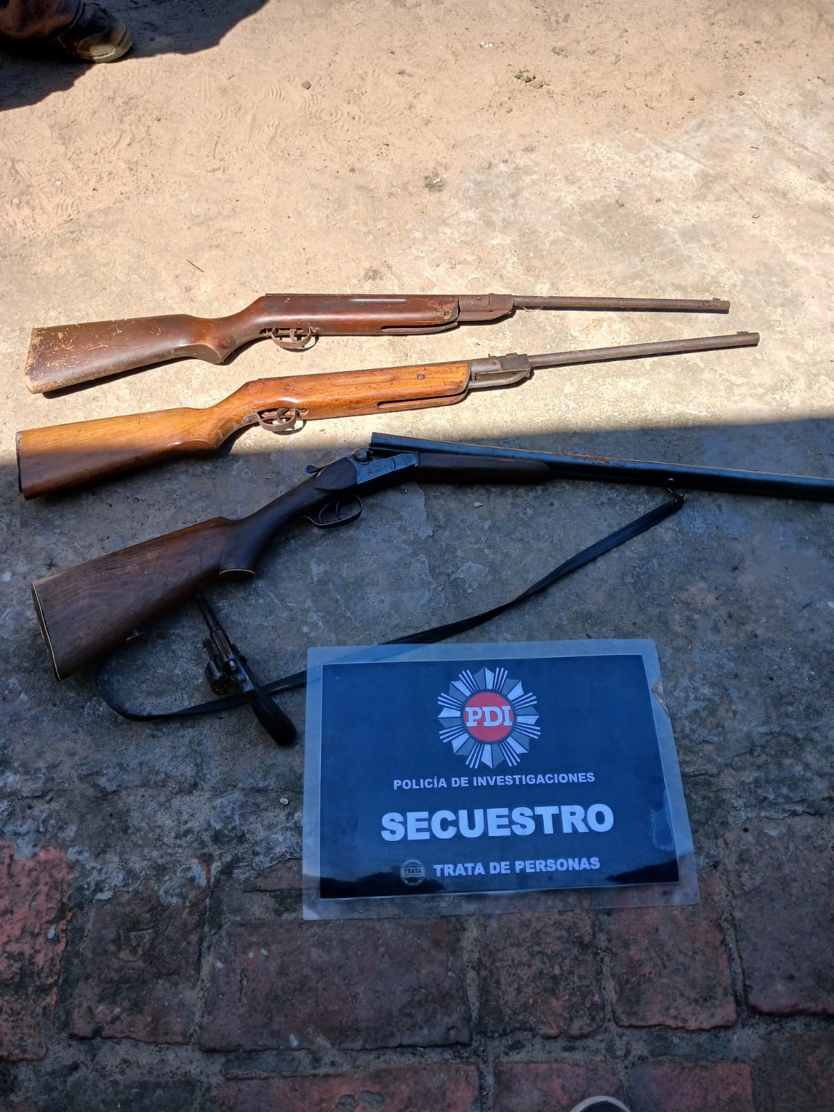 1 monitor marca Samsung, 1 CPU marca CX Intel i5, 1 mouse genérico con teclado, 1 DVR, 1 iPhone 16, varias carpetas, cuadernos, agendas, chequeras, contratos, remitos y documentación contable, 1 camioneta VW Amarok, 6 teléfonos celulares, 1 bolsa con papeles varios, 1 escopeta calibre 16., 1 revólver calibre 32, 33 cartuchos calibre 32, 2 aire comprimido 5,½, 1 escopeta 12/70, 65 cartuchos calibre 12/70, 1 revólver calibre 22 en desuso, 132 cartuchos calibre 22, 1 frasco con cogollos de marihuana, U$D 4.205, 1 cargador 22 mm largo con 6 cartuchos, 60 cartuchos escopeta negros, 89 cartuchos escopeta naranja, perdigones, tacos de recarga, 1 pistola de bengalas con 3 cartuchos, 1 aire comprimido nro. 498, 1 carabina Rubí Extra M.R cal.22 con cargador, 1 aire comprimido,