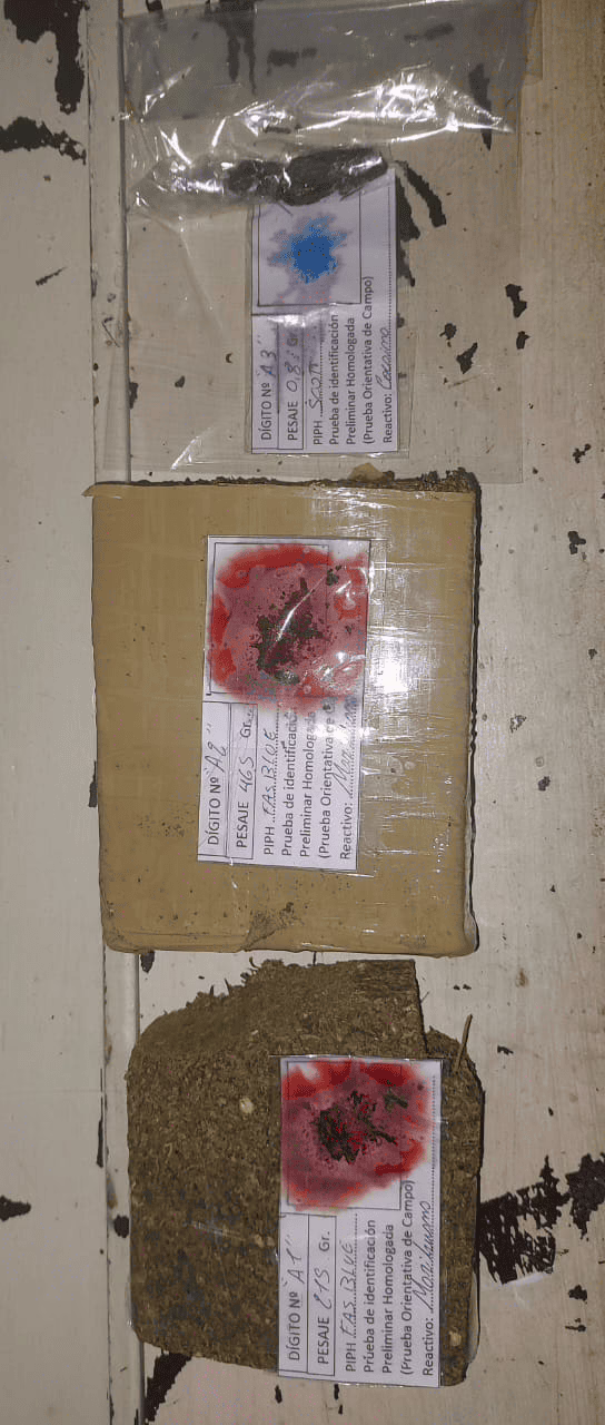 Entre los elementos secuestrados se encuentran dos trozos compactos de marihuana que suman un total de 680 gramos, un envoltorio de nailon​ con 0,8 gramos de cocaína, así como también la suma de 138 mil pesos argentinos, un celular y un pasaje de Santa Fe a Reconquista a nombre del implicado, entre otras.