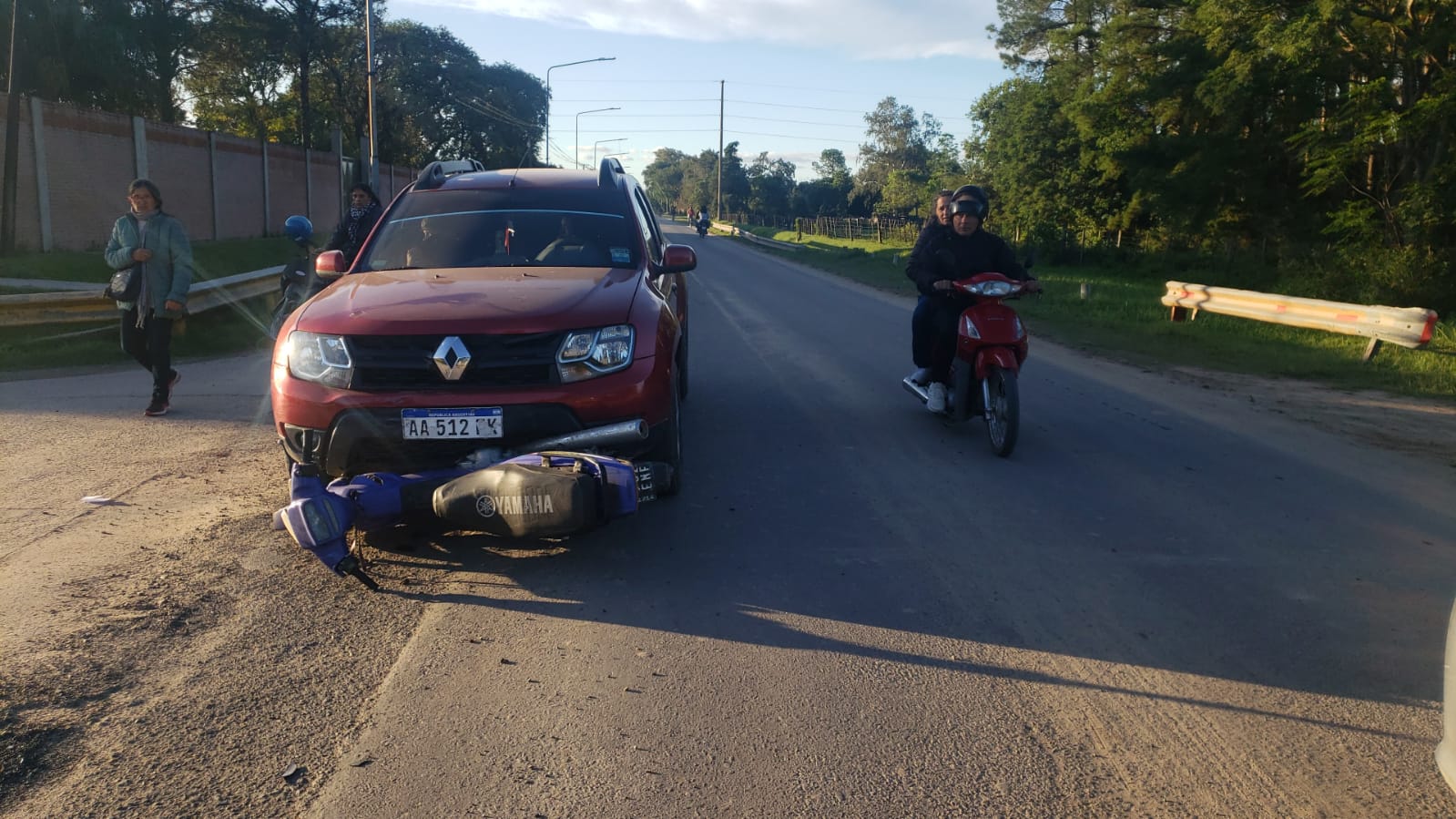 Sucedió pasadas las 17:30 horas en Avenida Fray Antonio Rossi y Calle 47, participaron una utilitario Renault y una motocicleta. El conductor del vehículo de menor porte se quejaba de fuerte dolores en sus extremidades.