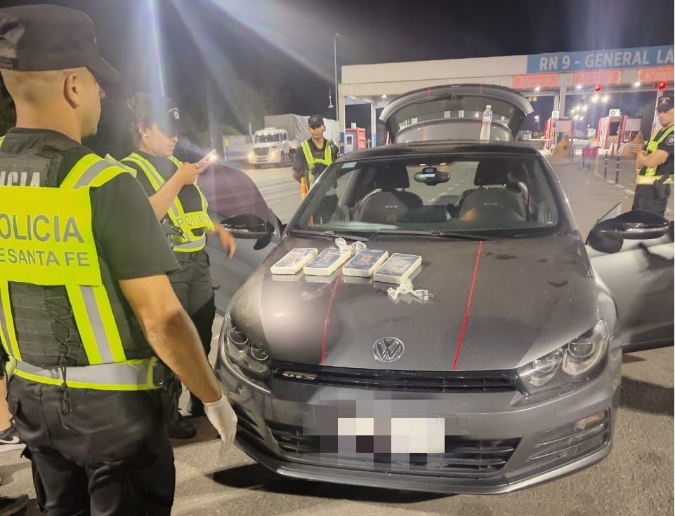 El procedimiento se concretó alrededor de las 02:15 horas, cuando personal de la Guardia Provincial realizaba controles sobre la Autopista AU09, kilómetro 271, peaje General Lagos. En ese contexto, los efectivos detuvieron la marcha de un automóvil Volkswagen Scirocco, que circulaba desde la provincia de Buenos Aires con destino a la ciudad de Rosario, específicamente al barrio Las Flores.