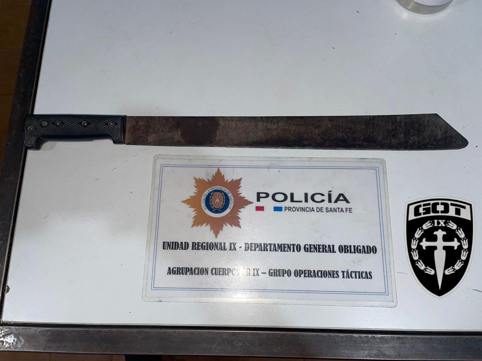 La policía aprehendió a un hombre que estaba en la vía pública con un machete