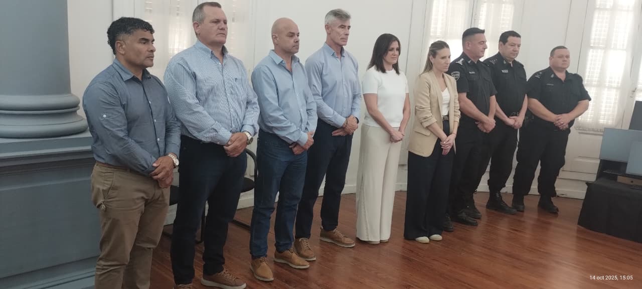 Durante el acto que se realizó en la Unidad Regional IX, estuvieron presentes la Secretaria de Gestión Institucional, Lic. María Virginia Coudannes, los coordinadores operativos dependientes del Ministerio de Seguridad, directores generales Lino Segretin, Julio Romano, Juan Jose Voulloz y el Subdirector de Policía Luis Acosta, el Jefe de la Unidad Regional IX Director de Policía Abog. Diego Costanzo, el Subjefe de esta Unidad Regional Subdirector de policía Cristian Sanchez, Jefes de Plana Mayor, Jefe AUOP, Jefe y Subjefe de Agrupación Cuerpos y personal de demás dependencias policiales.