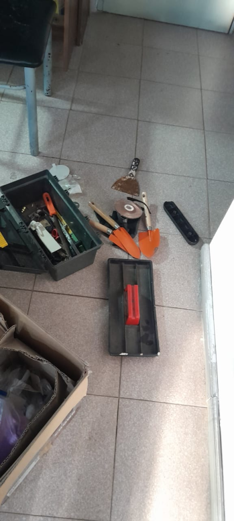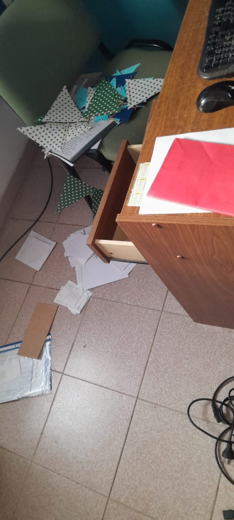 El hecho ocurrió en la madrugada de este lunes y, en la mañana, fue descubierto por el personal del centro. Se puede ver en las imágenes que forzaron averturas y, por elementos que dejaron tirados, confirmar que se llevaron mercadería (destinada a los niños que asisten al lugar), herramientas de jardinería y de oficina, entre otros.