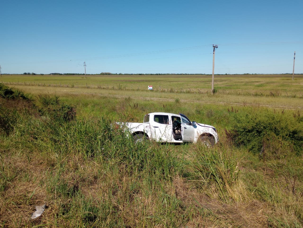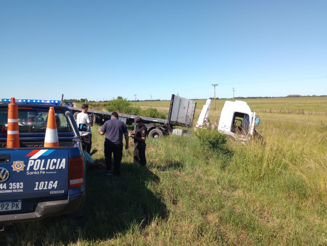 Ambos vehículos quedaron en la banquina izquierda, dirección sur. Scarel sufrió lesiones graves en su brazo izquierdo y quedó atrapado dentro de la pick-up. Bomberos de Villa Ocampo trabajaron para liberarlo.