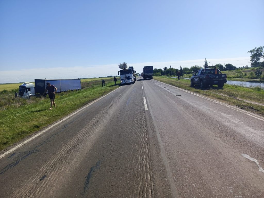 Transito interrumpido en Ruta 11: retiran un camión que despistó al colisionar con un colectivo