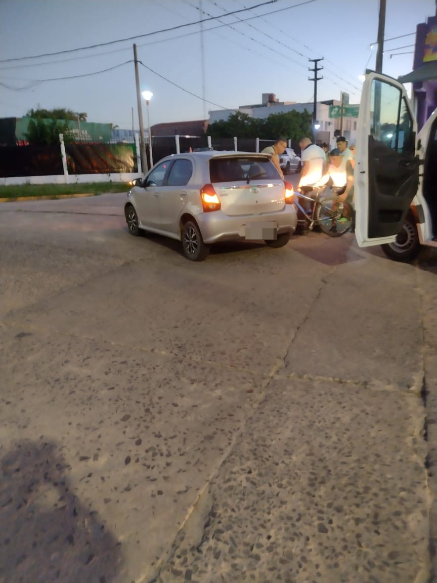 El hecho se registró alrededor de las 20:00 h en la intersección de calles 9 de Julio y bulevar Lovatto, donde colisionaron un Toyota Etios XLS, conducido por Delfina Cian, de 18 años y domicilio en barrio Chapero, y una bicicleta SLP rod. 29 guiada por Francisco Lezcano, de 70 años, también vecino del mismo barrio.