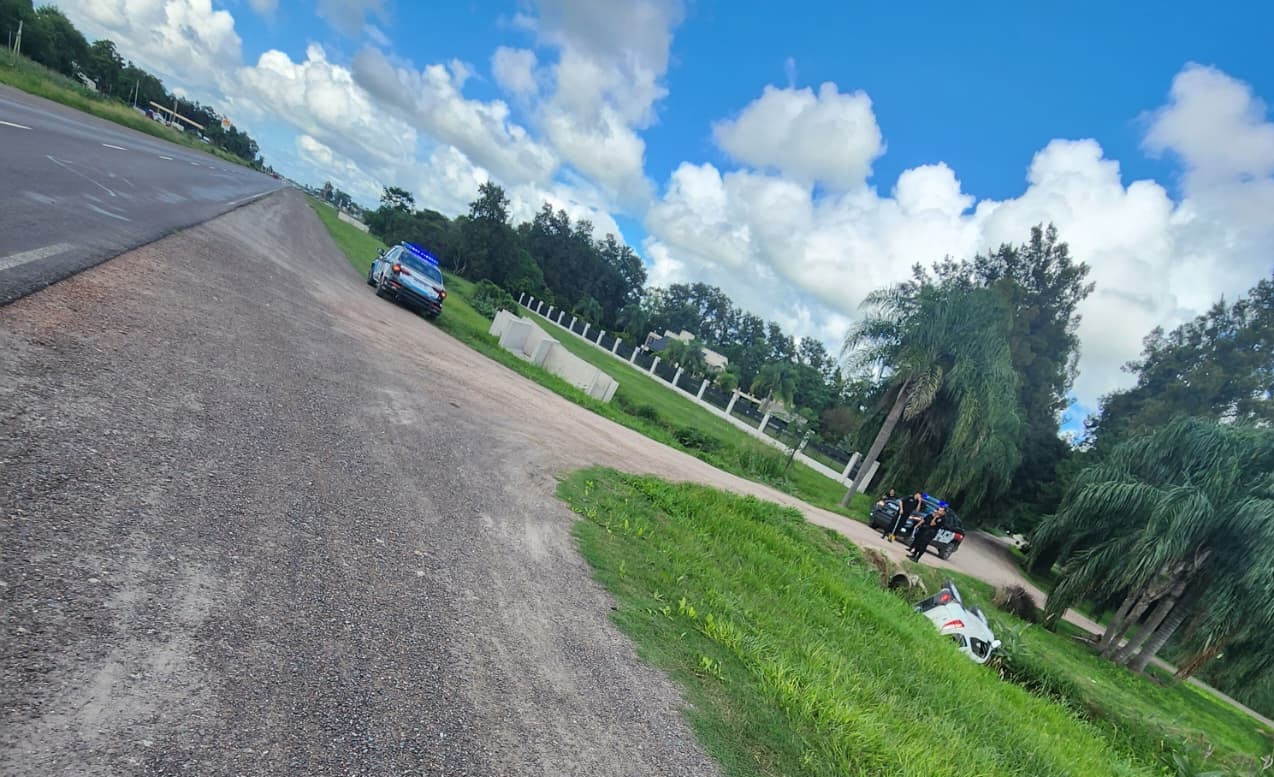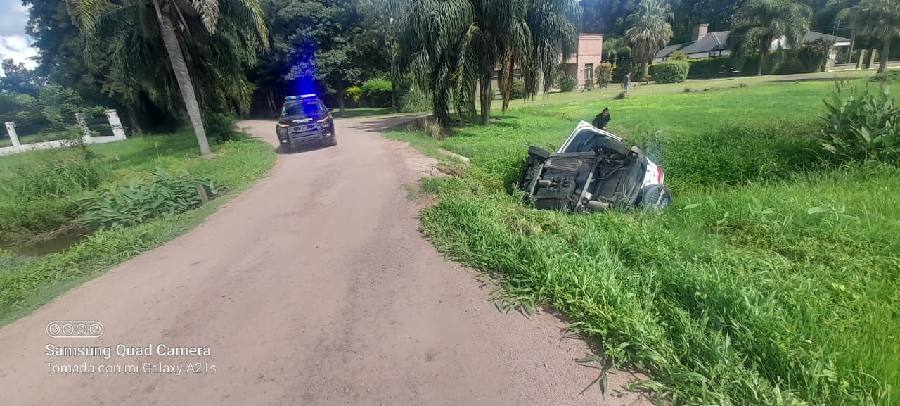 Donde un automóvil Ford Eco Sport de color blanco, perdió el control y cayó a una zanja, sin intervención de terceros. Los dos ocupantes, un hombre y una mujer ambos mayores de edad Nicasio Luis Aranda de 61 años y Olga Beatriz Cubilla de 64 años, domiciliados en la ciudad de Santa Fe, fueron trasladados al hospital local para su control médico. Colaboraron personal de Bomberos Zapadores y servicio de emergencias.