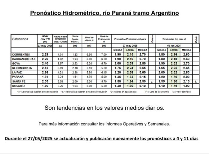 El Instituto Nacional del Agua (INA) dio a conocer recientemente sus previsiones hidrológicas para el Río Paraná, y los datos indican que no se esperan grandes cambios en el nivel del río en los próximos días.