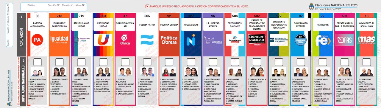 Este domingo 26 de octubre, los santafesinos acudirán a las urnas en los comicios legislativos nacionales 2025, en los que la provincia de Provincia de Santa Fe renovará nueve bancas en la Cámara de Diputados de la Nación. Al mismo tiempo, se implementa por primera vez a nivel nacional el sistema de Boleta Única de Papel (BUP).