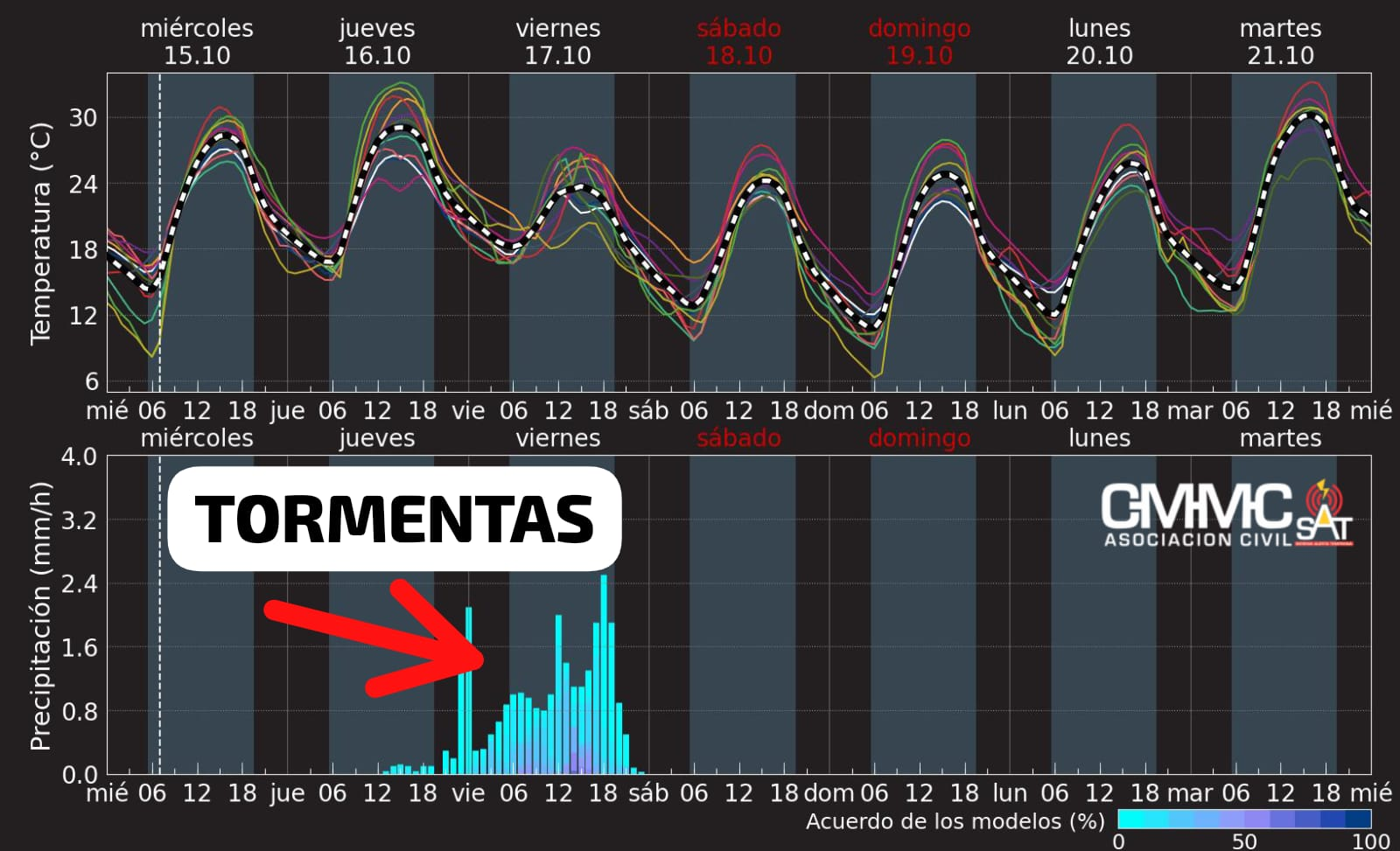 Las temperaturas seguirán agradables y cálidas durante las tardes, al menos hasta el jueves. A partir de allí, comenzará a aumentar la nubosidad y con ella la probabilidad de inestabilidad. El viernes será el día bisagra: el ingreso de aire frío podrá generar tormentas, acompañadas por viento del sudeste.