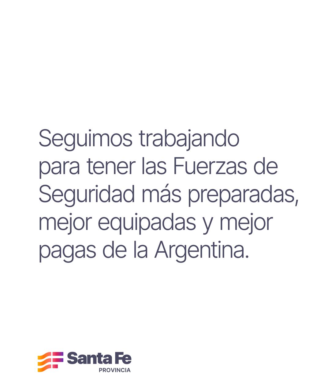 Antes de finalizar, reiteró que todas las jerarquías del personal van a estar percibiendo este aumento salarial, esta recomposición. “Y obviamente seguimos trabajando para que las fuerzas de seguridad sean las más preparadas, las más equipadas y con el acompañamiento que tienen que tener del gobierno de Santa Fe“, concluyó.