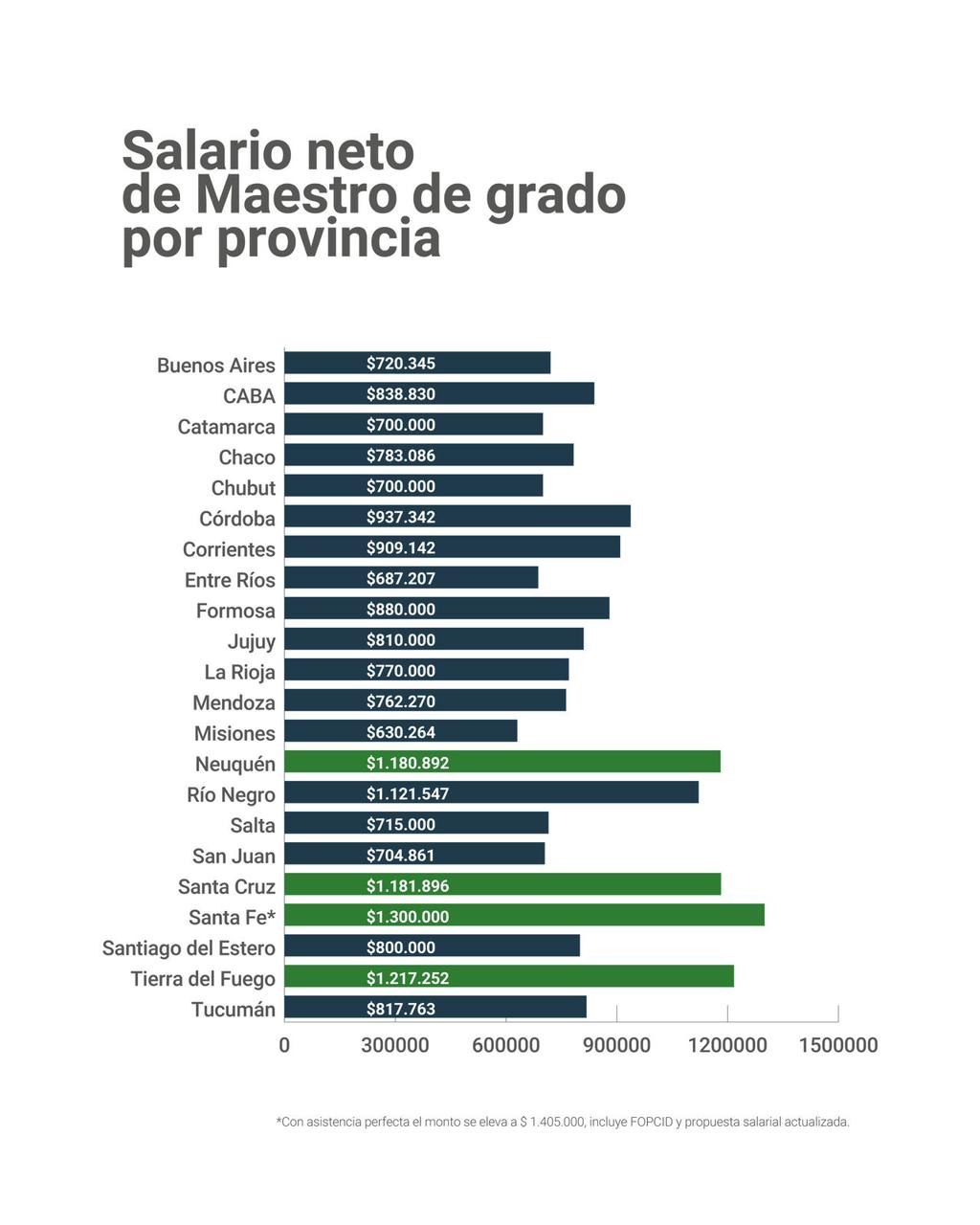 De acuerdo al relevamiento, Santa Fe encabeza el ranking con un salario neto de $1.300.000, posicionándose como la provincia con mejor remuneración para el cargo testigo. Incluso, según se detalla, con asistencia perfecta el monto asciende a $1.405.000, ya que incluye FOPCID y propuesta salarial actualizada.