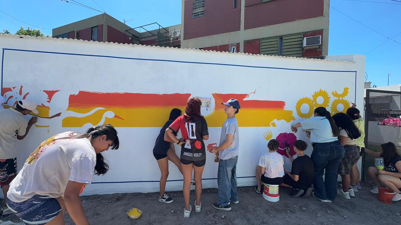 Este jueves 20 de noviembre se llevó a cabo la realización de un mural colectivo en el pasaje recientemente mejorado con adoquines, entre calles Alvear e Iturraspe (36/38) del barrio Moreno.