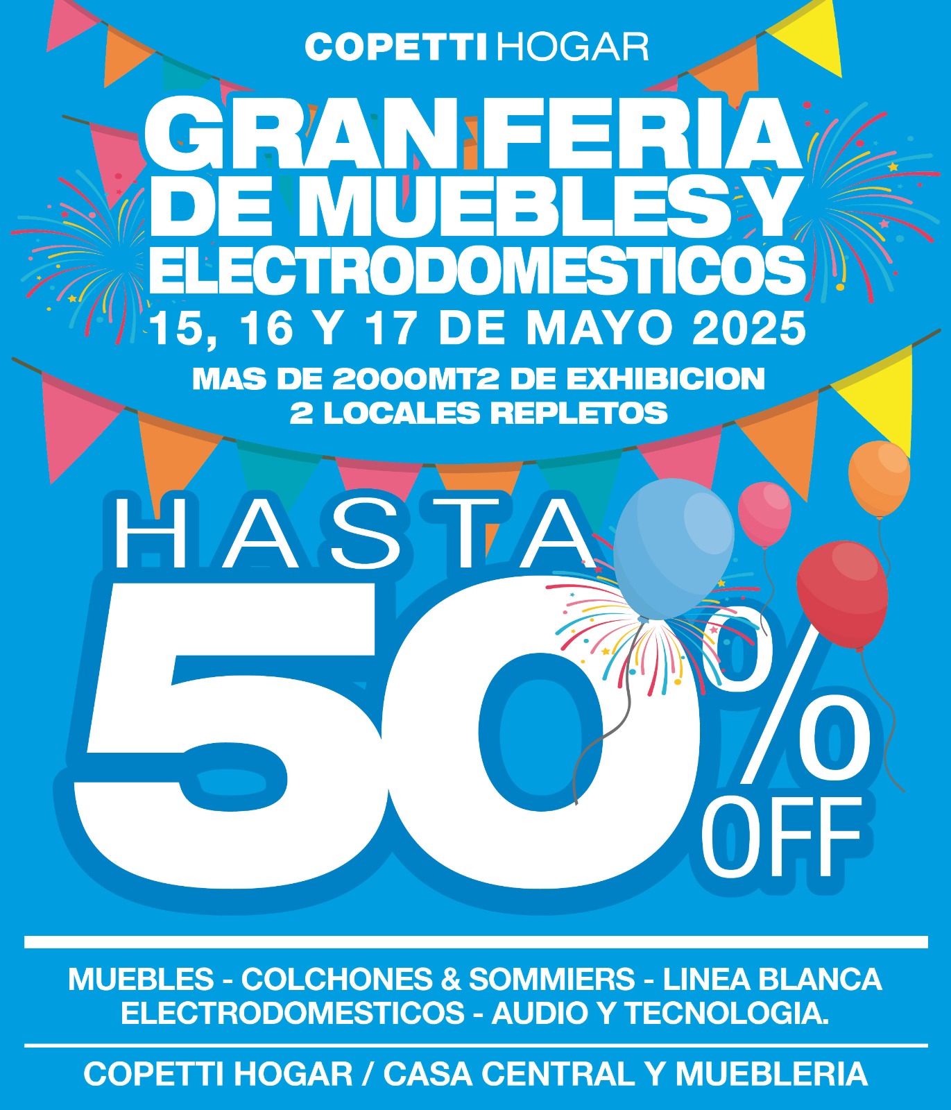 La invitación está hecha: jueves 15, viernes 16 y sábado 17 de mayo serán tres días ideales para renovar el hogar con productos de calidad a precios únicos. Y como dice el propio Copetti: “Donde entra un cliente, sale un amigo”.