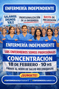 Grupo de trabajadores de la enfermería independiente convocan a una concentración para el próximo miércoles 18 de febrero, a las 10:00 h, frente al Nodo de Salud Reconquista.
