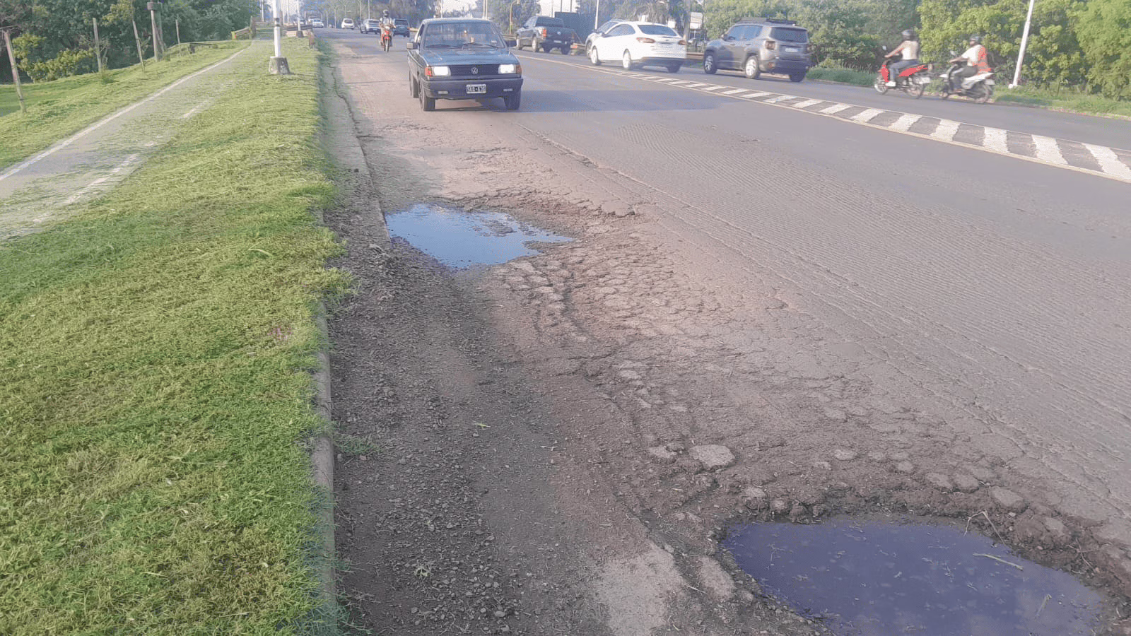 El mal estado de la Ruta Nacional 11 en Reconquista sigue siendo motivo de preocupación para los vecinos. A lo largo del Bv. Hipólito Yrigoyen, numerosos baches han aparecido y el pavimento muestra un marcado deterioro. Estas imágenes fueron tomadas hoy miércoles por el móvil de Vía Libre al norte de la intersección con Bv. Perón y Lovato, frente al Monumento a la Inmaculada Concepción.