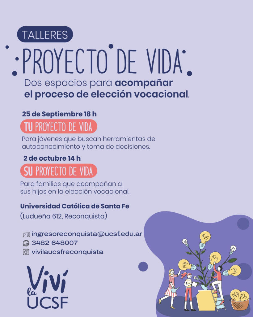 La Universidad Católica de Santa Fe sede Reconquista llevará adelante los talleres “Proyecto de Vida”, enmarcados en la propuesta Viví la UCSF.
