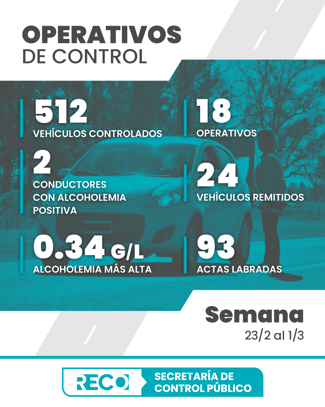 La Secretaría de Control Público informa los resultados de los controles realizados durante la semana del 23 de febrero al 1 de marzo: