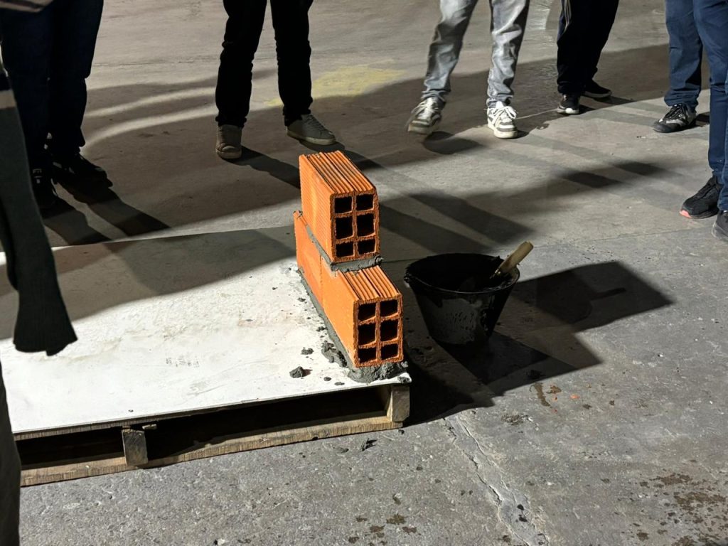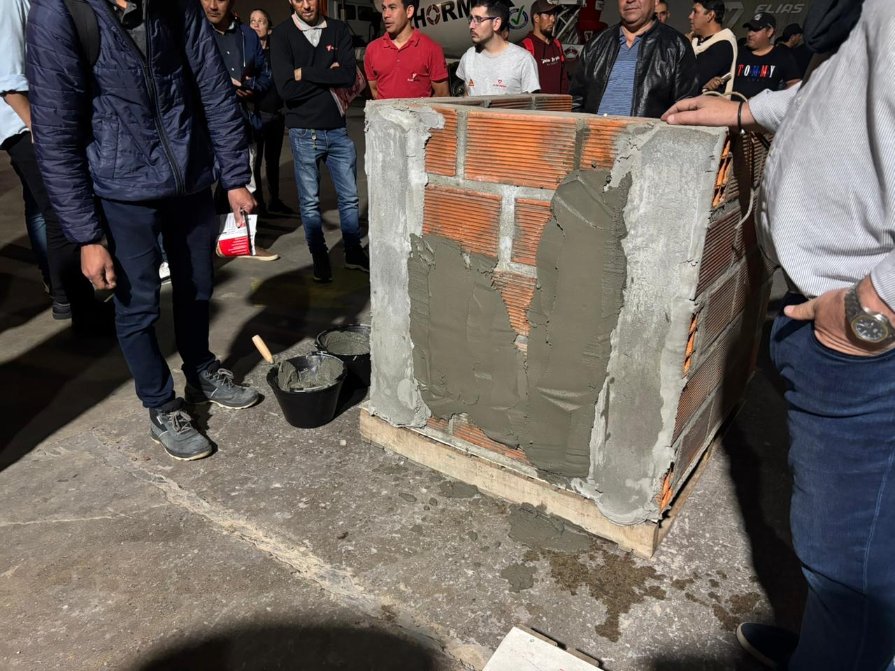 Durante la presentación, Guillermo Yapur explicó que con esta heramienta “ahorras tiempo, limpieza, desperdicio, ahorrando y optimizando costos. A su vez el rendimiento de la mano de obra es de 3 a 5 veces mayor, dado que el tiempo se utiliza en levantar pared o rebozar y no estar haciendo la mezcla”.