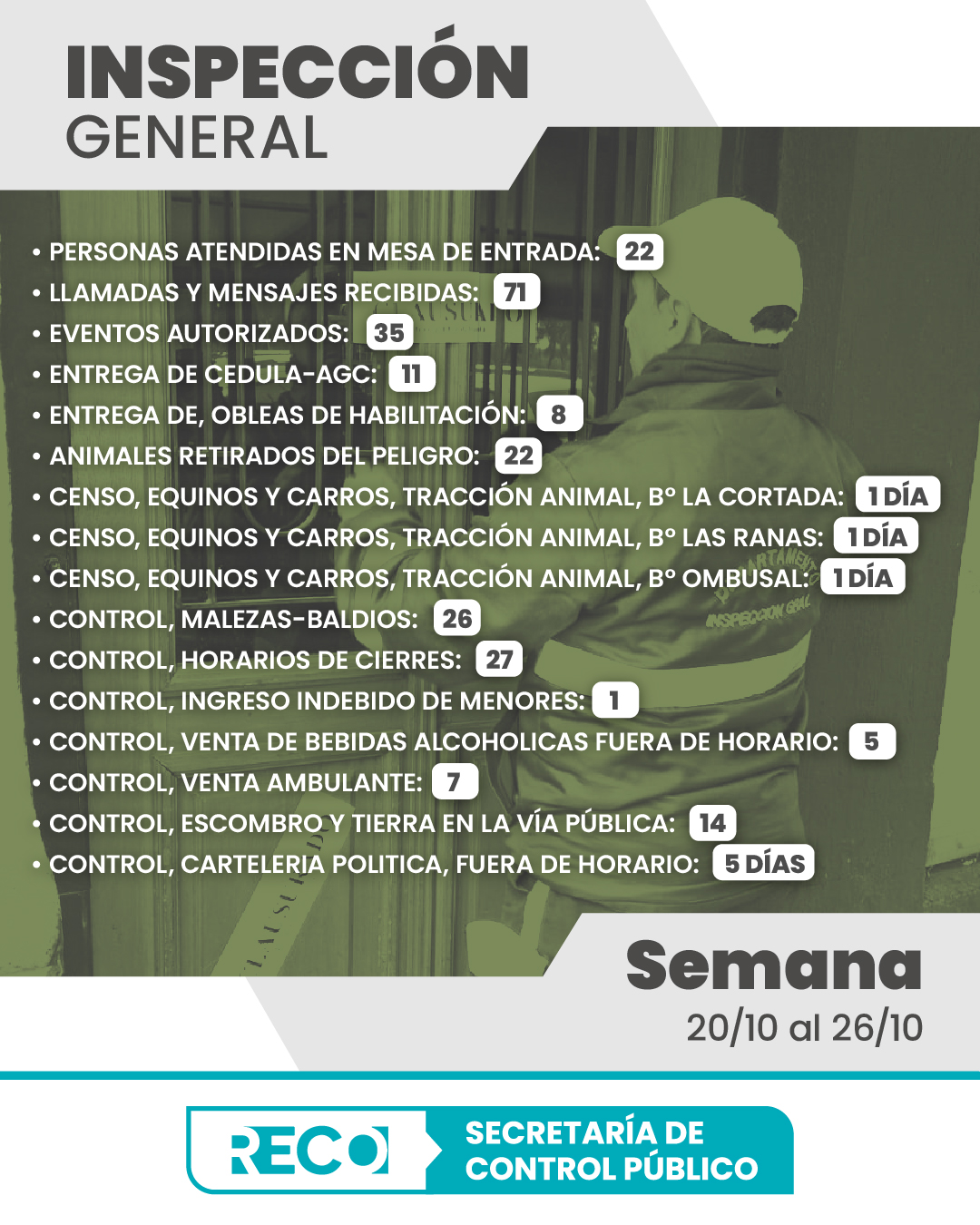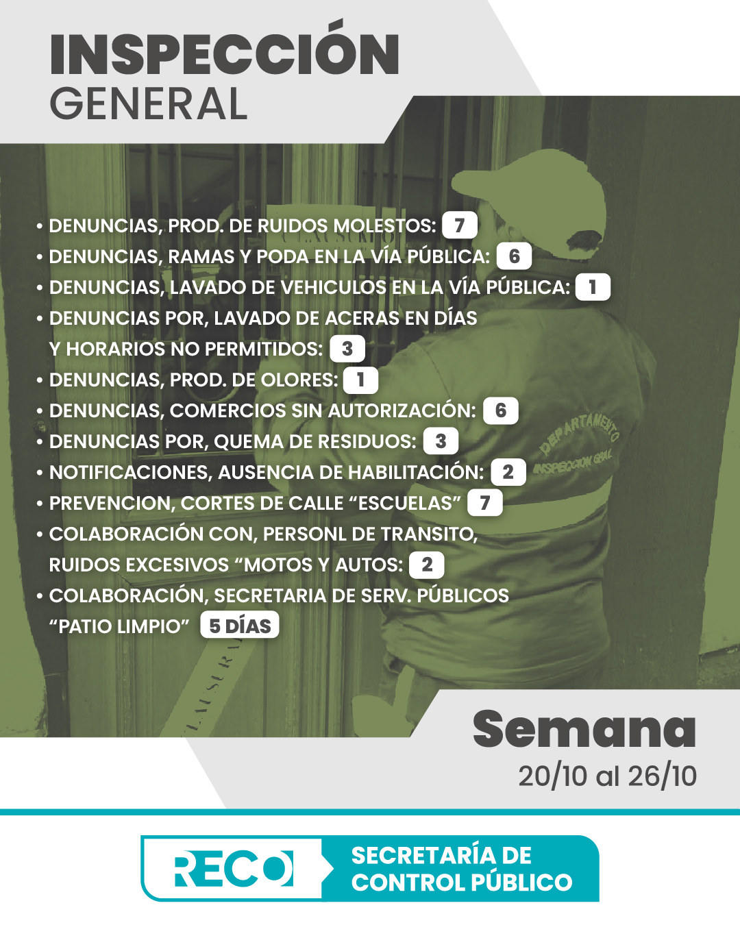 Estos son los resultados de los controles realizados durante la semana del 20 al 26 de octubre por la Secretaría de Control Público.