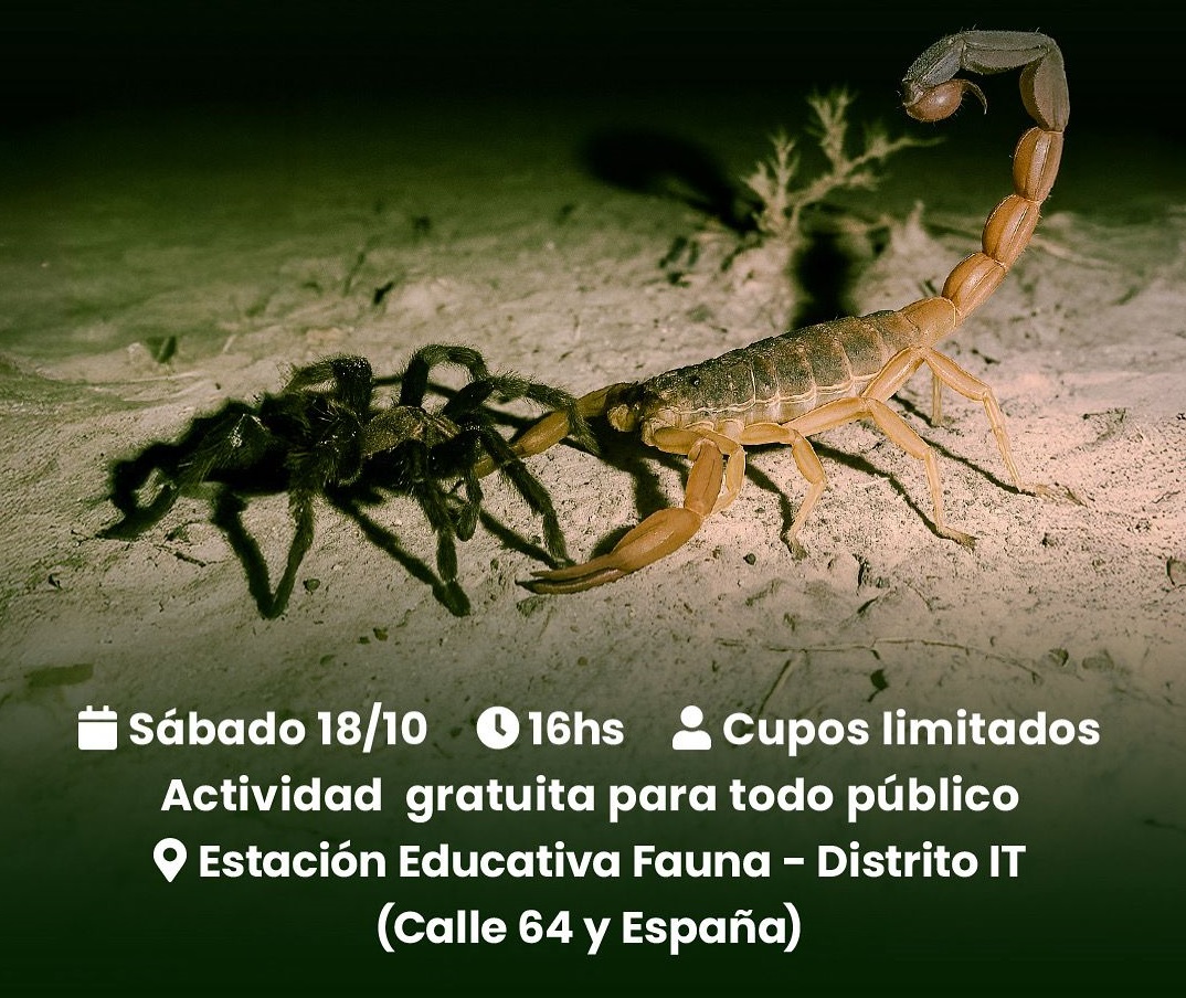 Este sábado 18 de octubre, a las 16:00, se realizará en la Estación Educativa Fauna – Distrito IT (Calle 64 y España) la charla “Los bichos que nos rodean: Aprender para convivir”, una propuesta destinada a conocer mejor a los insectos y arácnidos asociados a posibles riesgos para la salud.