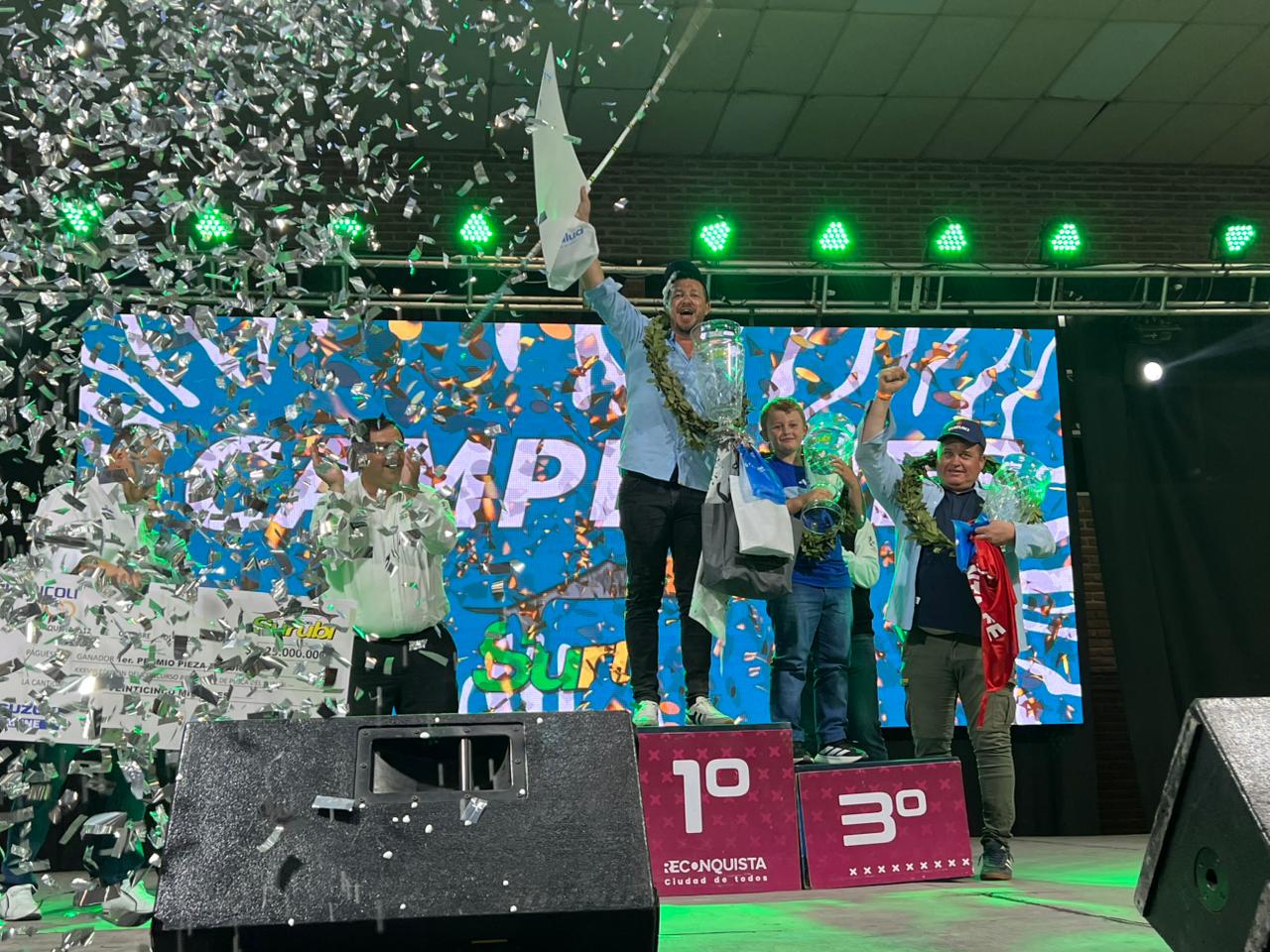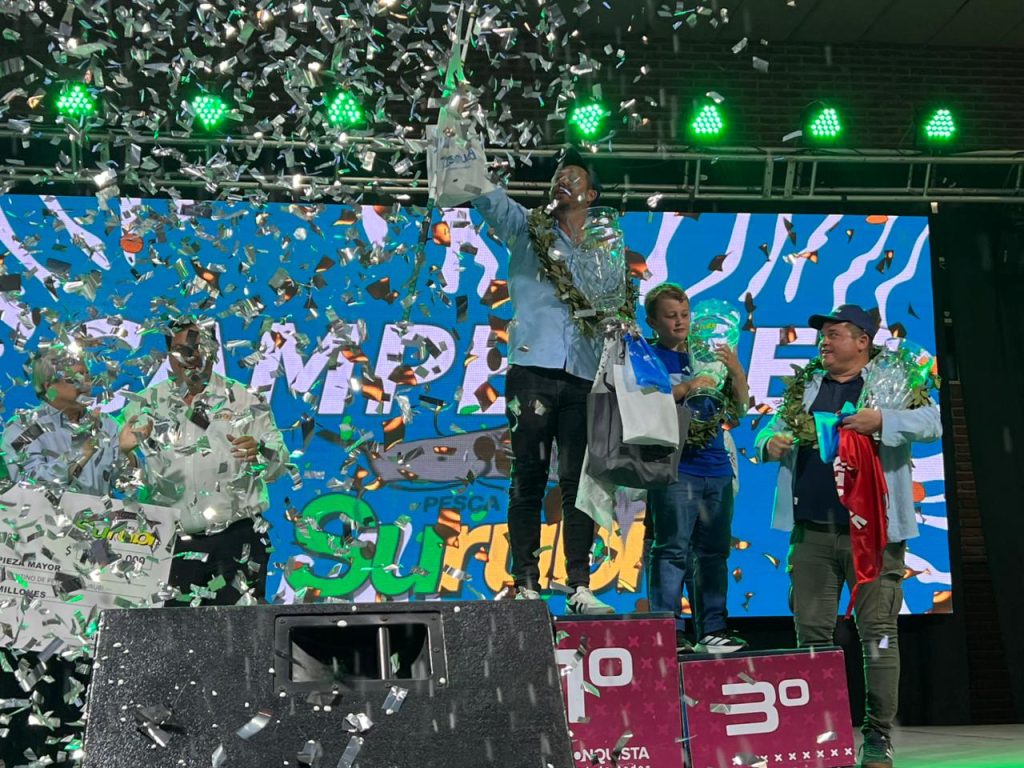 EL MOMENTO EN QUE SE ENTREGA EL PREMIO A LEANDRO DEAN, GANADOR POR PIEZA MAYOR: