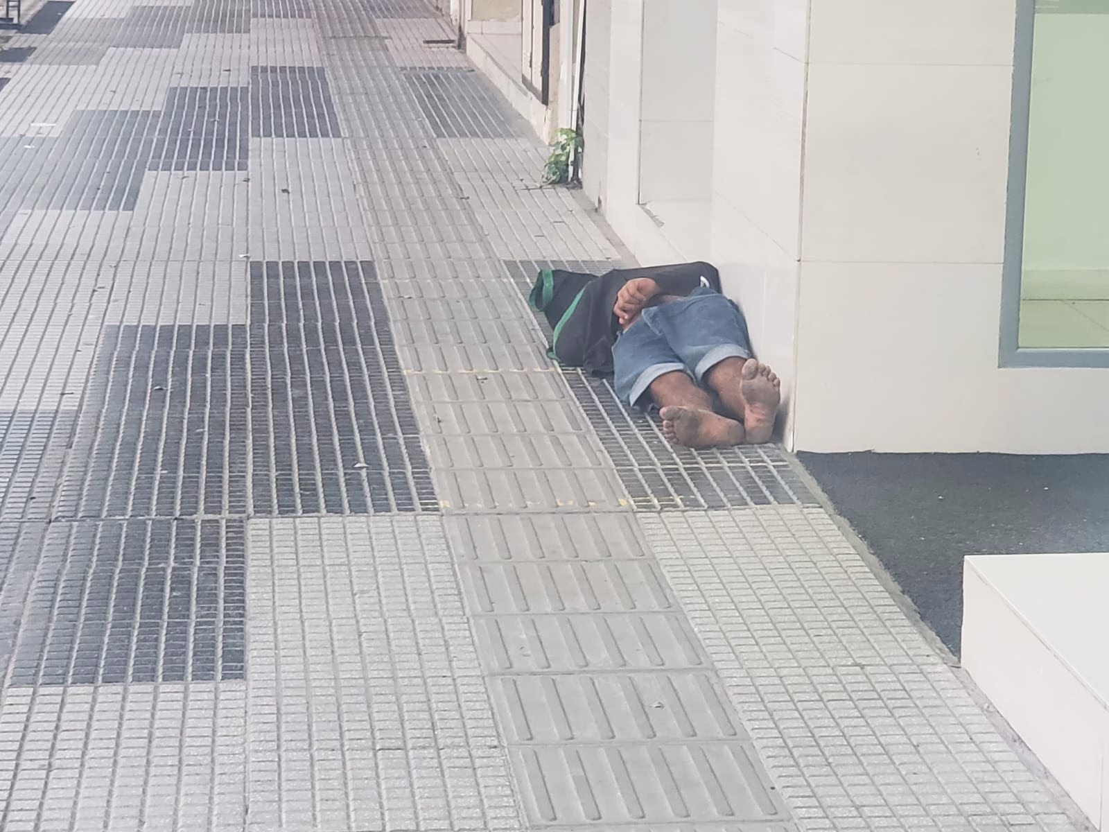Este viernes el equipo de Vía Libre se dirigió a la puerta del Banco Macro, en pleno centro de la ciudad, lugar donde se encuentra un joven en situación de calle durmiendo y pasando sus horas.